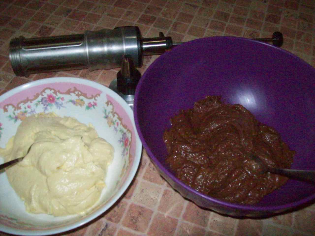 "coperchio chiuso" aggiungere il cacao e l'olio: 15sec / vel 5. La teglia foderare con la carta. Con la siringa x dolci, preparare dei biscotti direttamente sulla carta, bianchi, poi neri. Cuocerli nel forno caldo: 180-190° / 10-15min. Lasciarli raffreddare x 2min sulla teglia ( sono molto delicati), poi toglierli tranquillamente.