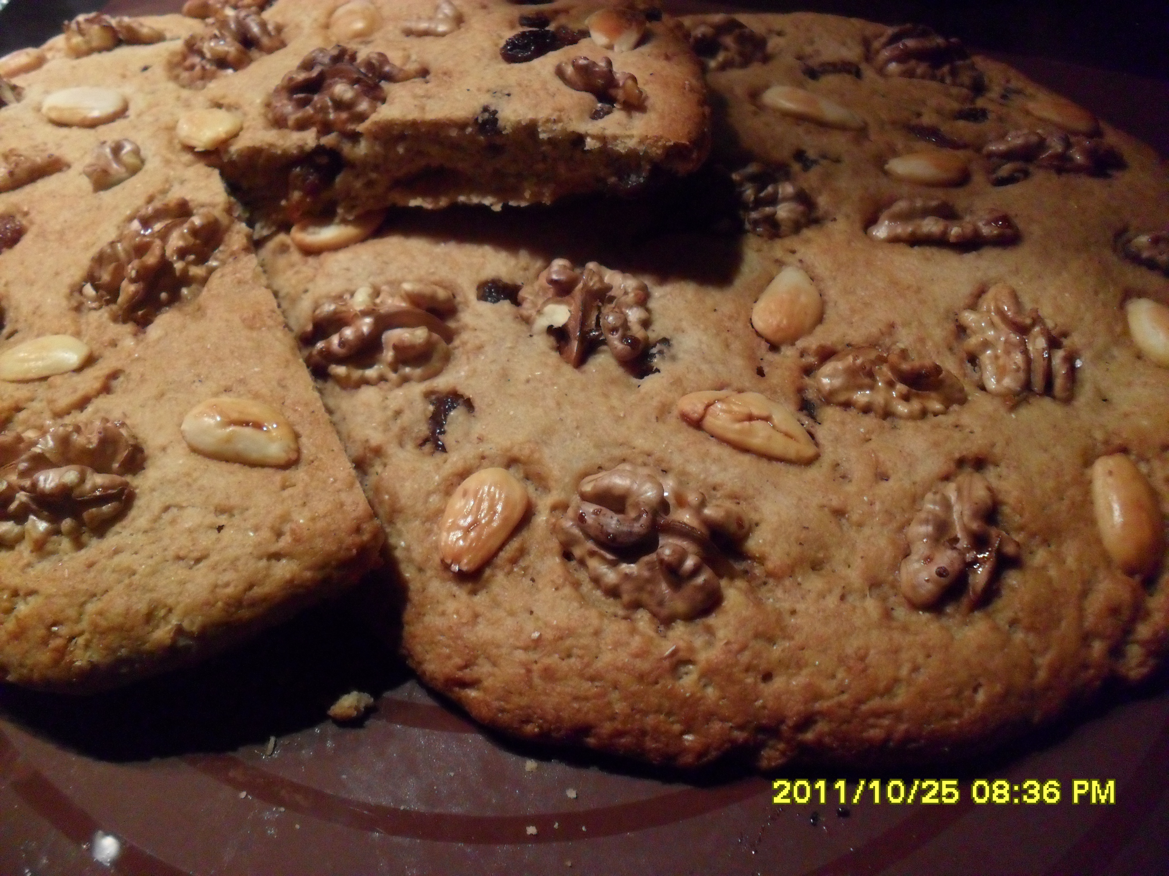 Unire l'uvetta e impastarle. Ricoprirle di noci e mandorle.