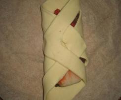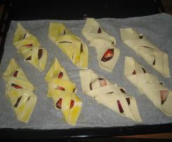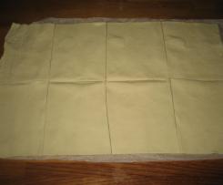Suddividere la sfoglia in 8 parti uguali con la rotella. - Praticare dei tagli a L con la rotella (vedi foto).