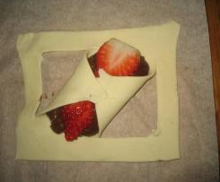 - Farcire al centro con una cucchiaiata di crema e con le fettine di fragola.