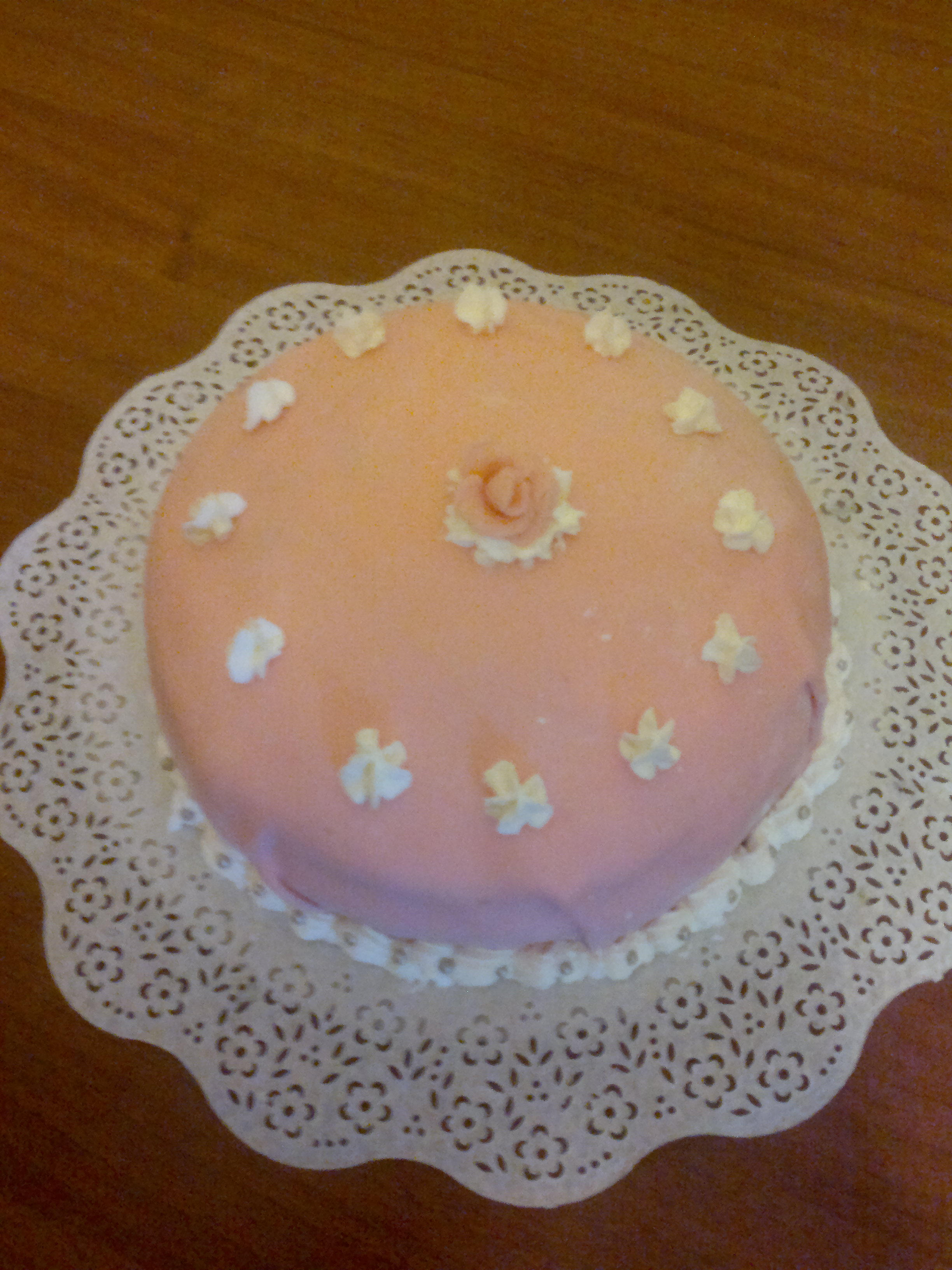 Ecco fatta la torta, poi si abbellirà a nostro piacimento, io ho usato la panna chantilly, la stessa che ho messo per fare aderire la pds, così le decorazioni non si smontano.