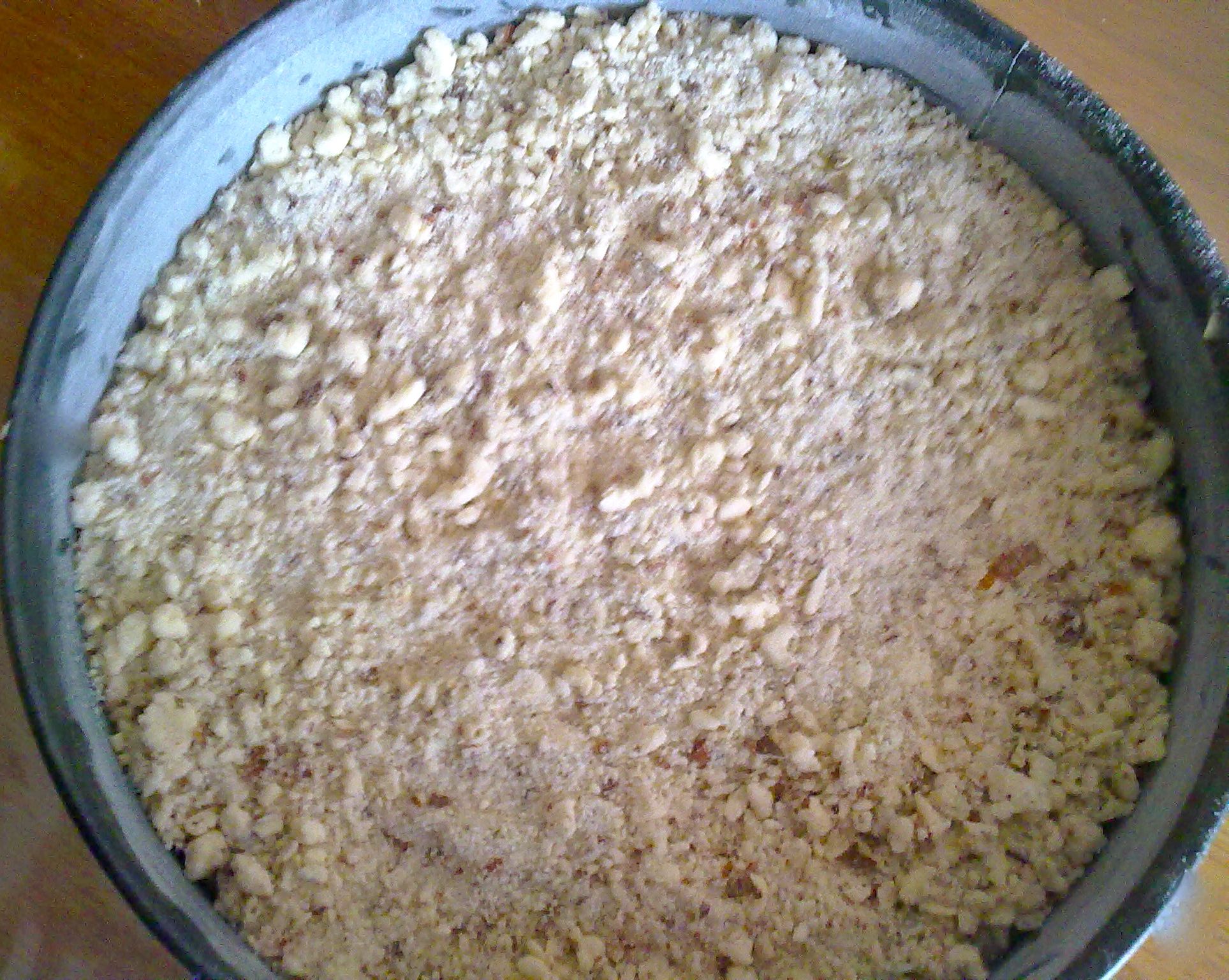 "coperchio chiuso" le mandorle e tritare 2 sec. vel. 8, unire il burro freddo a pezzetti, la farina e lo zucchero 5 sec. vel. 5. Otterrete così un composto sabbioso che dovrete conservare in frigorifero fino al memento di usarlo. Preparare la base: