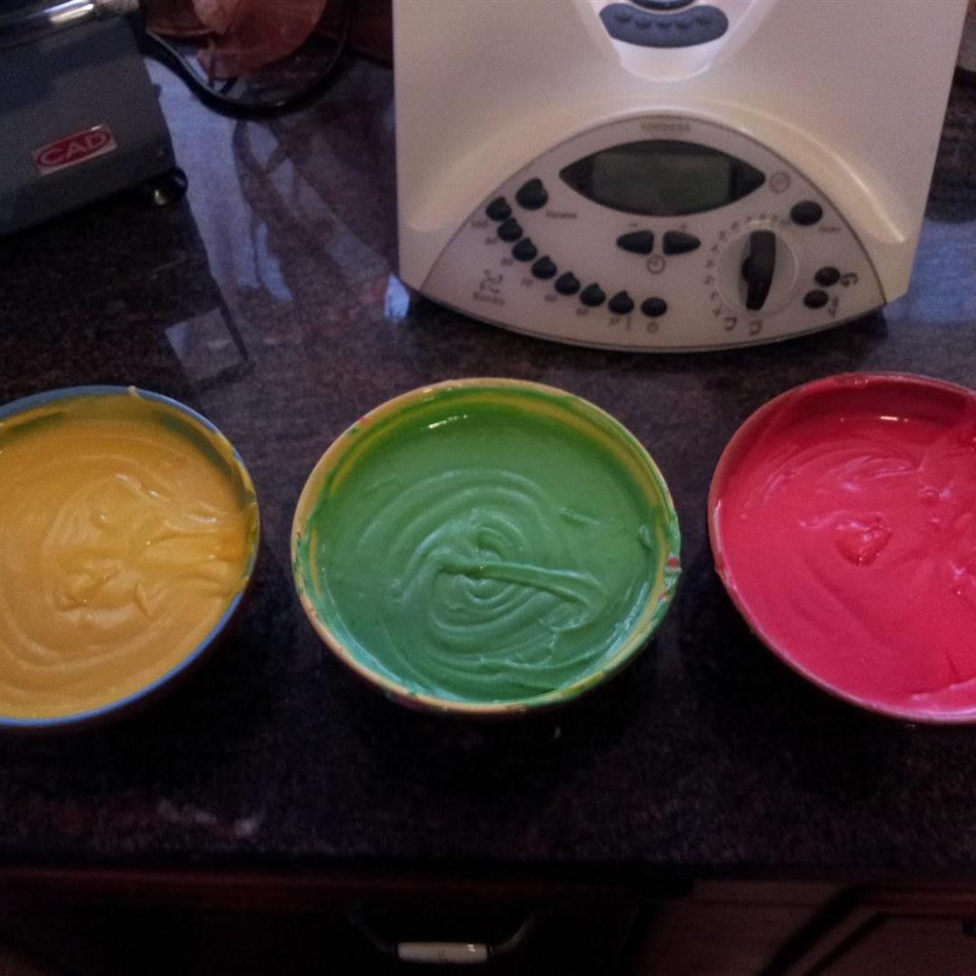 Dividere la pasta in tre parti e colorare col colorante alimentare in povere.