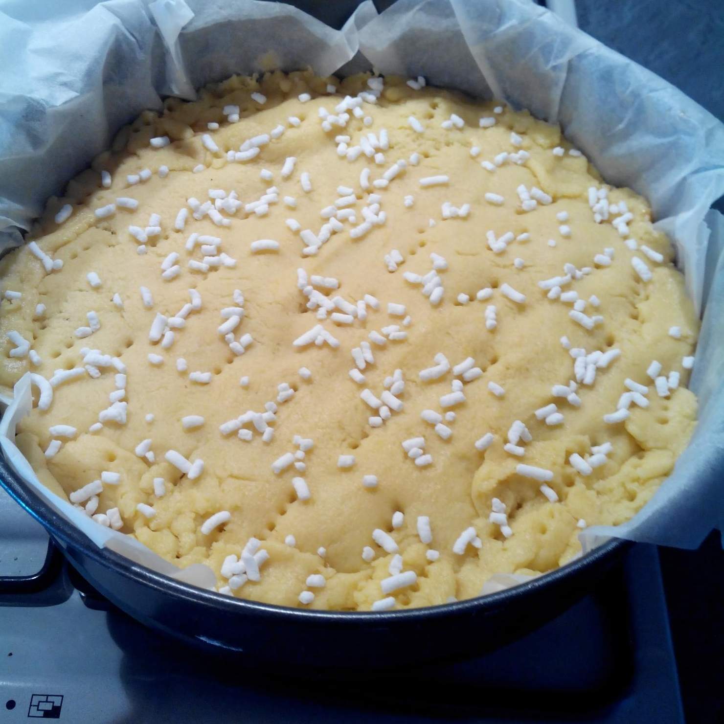 Terminare con l'ultimo strato di frolla, cercando di chiudere bene tutto il bordo esterno per non far fuoriuscire la marmellata.