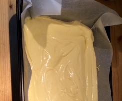 Versare l'impasto ottenuto in una teglia rettangolare di medie dimensioni (io ne uso una da 25x33 h 5 cm) foderata con carta forno, e con l'aiuto di una spatola distriburie l'impasto in modo omogeneo nella teglia (vedi foto).