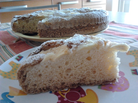 A cottura ultimata lasciate raffreddare la torta e spolverizzarla con zucchero al velo e cannella.