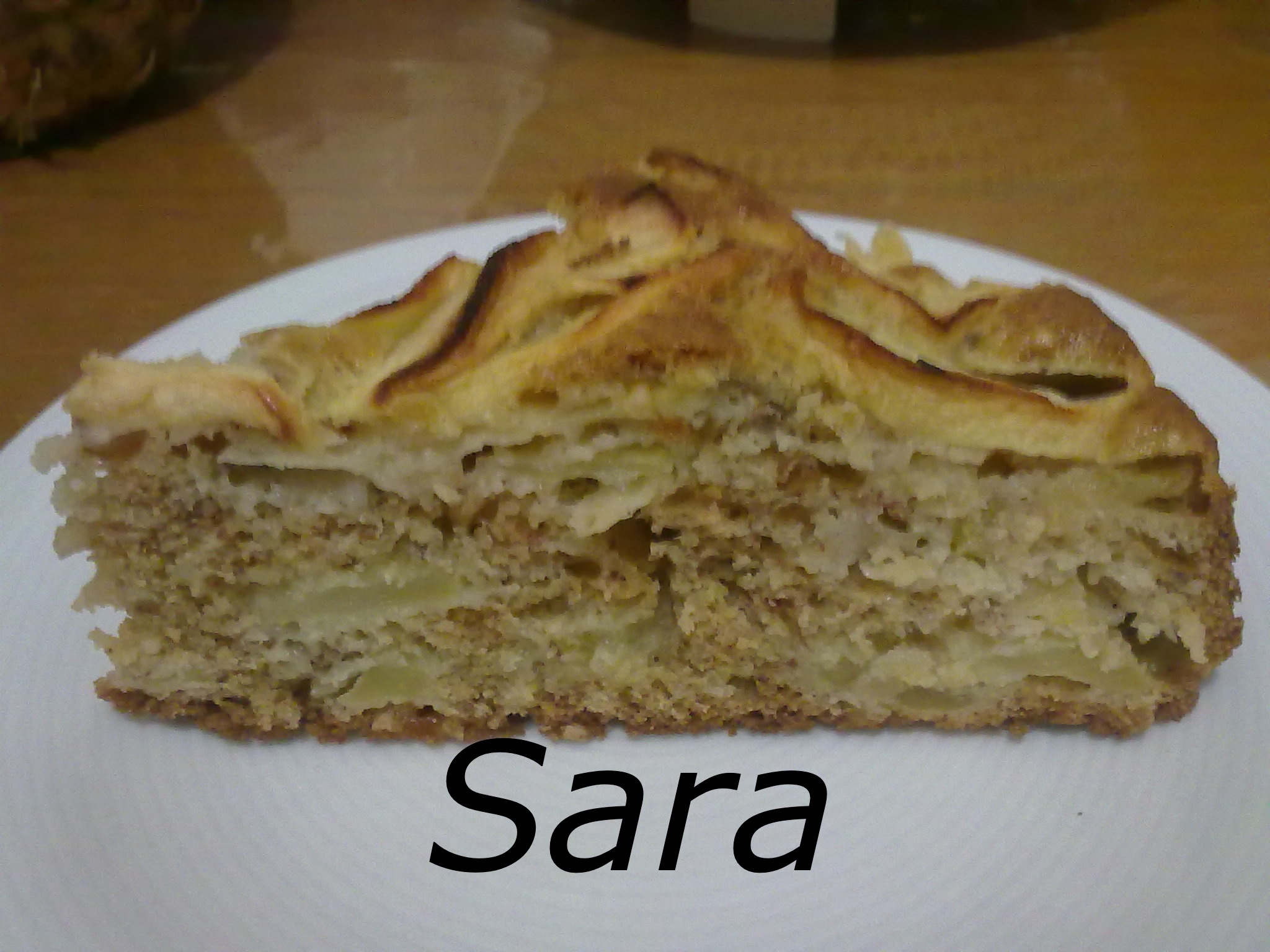 "coperchio chiuso" e mettetelo in una terrina, aggiungete metà delle mele che avete tagliato a fettine ed aiutandovi con la spatola mescolate delicatamente. Versate in una teglia imburrata e infarinata (o carta da forno) e coprite con le restanti mele.