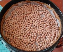 - Coprire la base con un foglio di carta forno e mettere dei fagioli o ceci secchi per evitare che si gonfi;