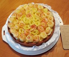 - Con 5 fettine di mela formare una striscia sovrapponendole un po' e arrotolarle formando una piccola rosa;
