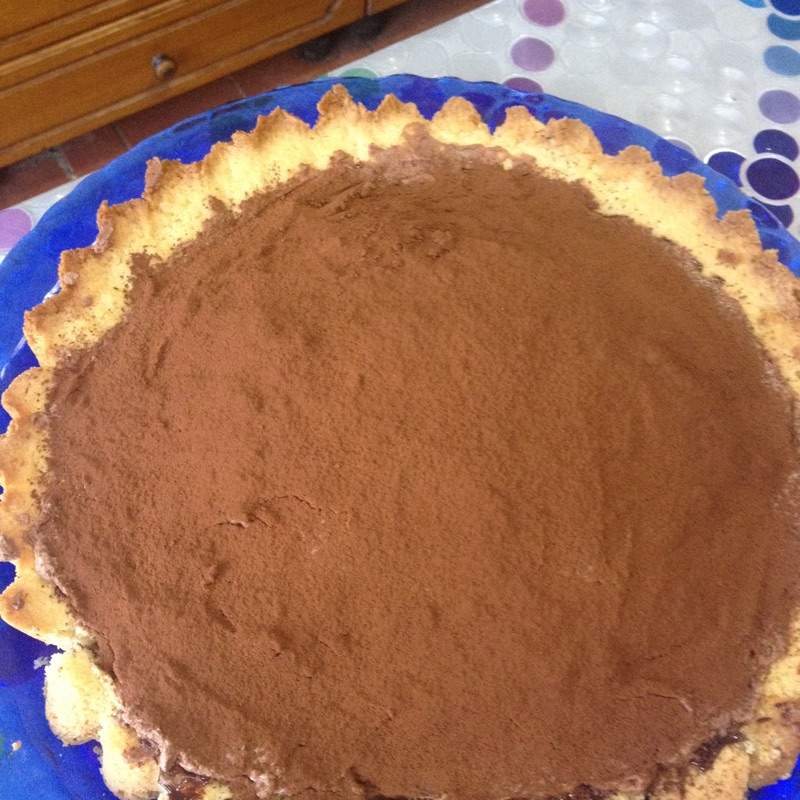 Mettete la mousse nella frolla dandole la forma di una cupola e tenetela in frigo almeno per un’ ora. Prima di servire spolverate la mousse con cioccolato amaro e volendo decorate la torta con cioccolato fuso bianco (lo sciogliete, preparare il disegno preferito sulla carta da forno e lo riponete in frigo ad indurirsi).