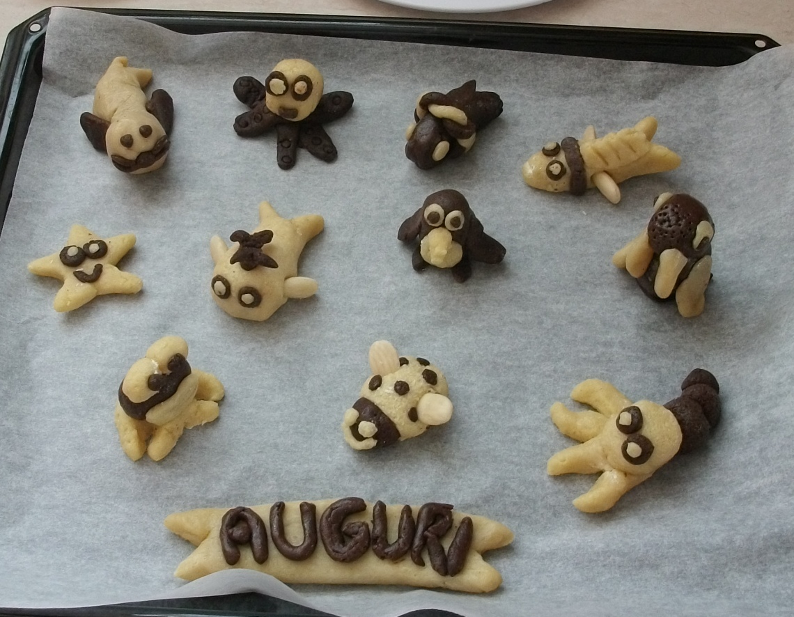 "coperchio chiuso" lo zucchero 15 sec vel turbo. Aggiungere le uova 1 min vel 5. Unire il burro 20 sec vel 5 e 30 sec vel 7. Aggiungere la fecola, il sale, e il lievito 30 sec vel 5. Versare il composto in una tortiera di circa 28 cm diam. imburrata e infarinata e cuocere in forno preriscaldato a 160° per 10 min, poi a 180° per 15 min e poi a 200° per 10 min. Sfornare la torta e lasciare raffreddare.infornare gli animaletti di frolla a 180° per 15 min