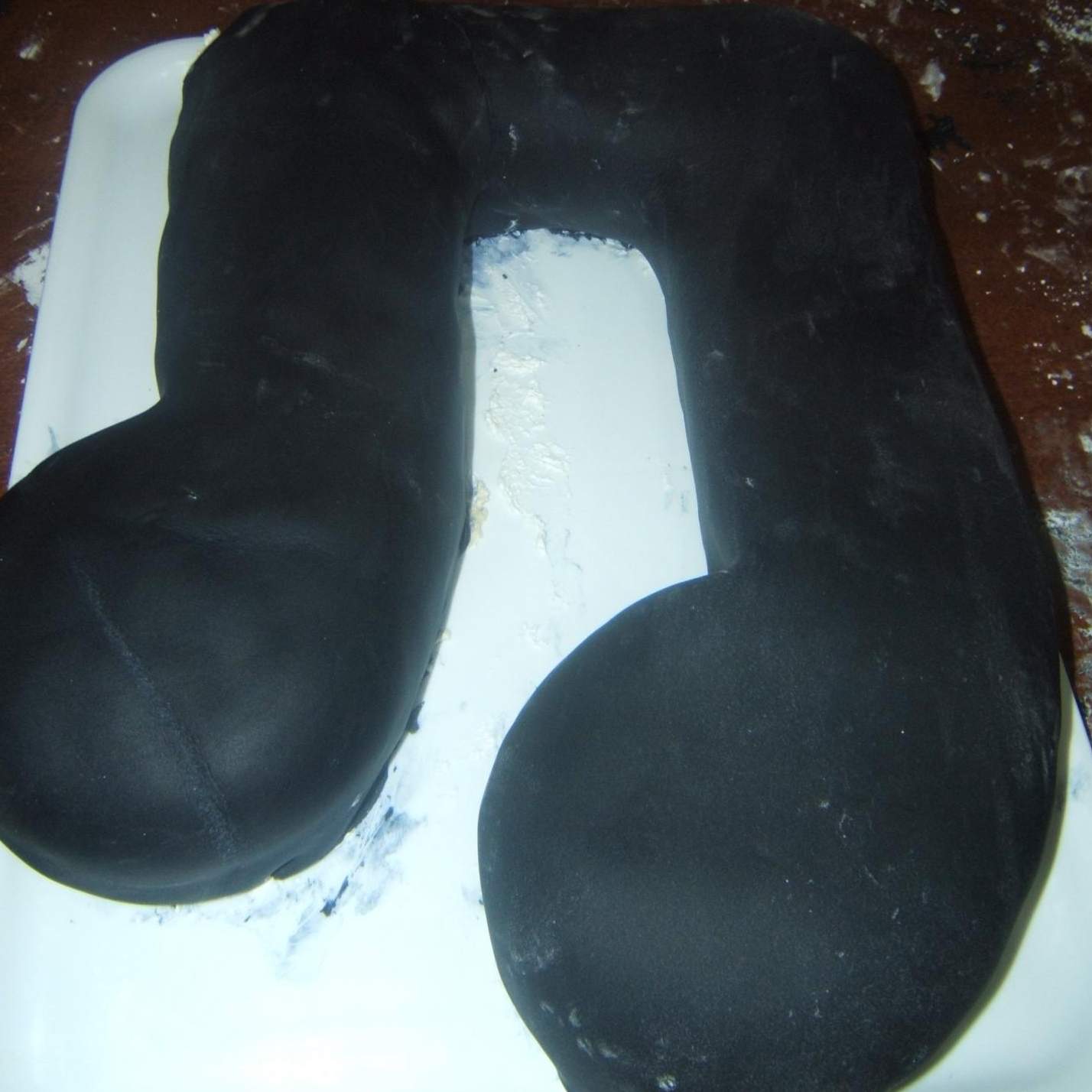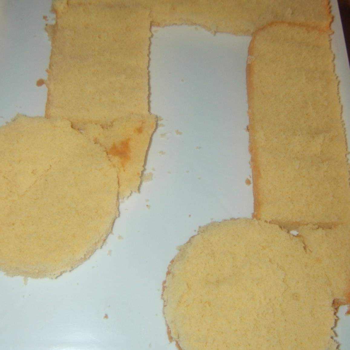 QUANDO E' RIPOSATO CON UN COPPAPASTA TAGLIARE DUE CERCHI E CON IL PAN DI SPAGNA RESTANTE FORMARE TRE RETTANGOLI CERCANDO DI RIPRODURRE LA FORMA DI UNA NOTA MUSICALE.