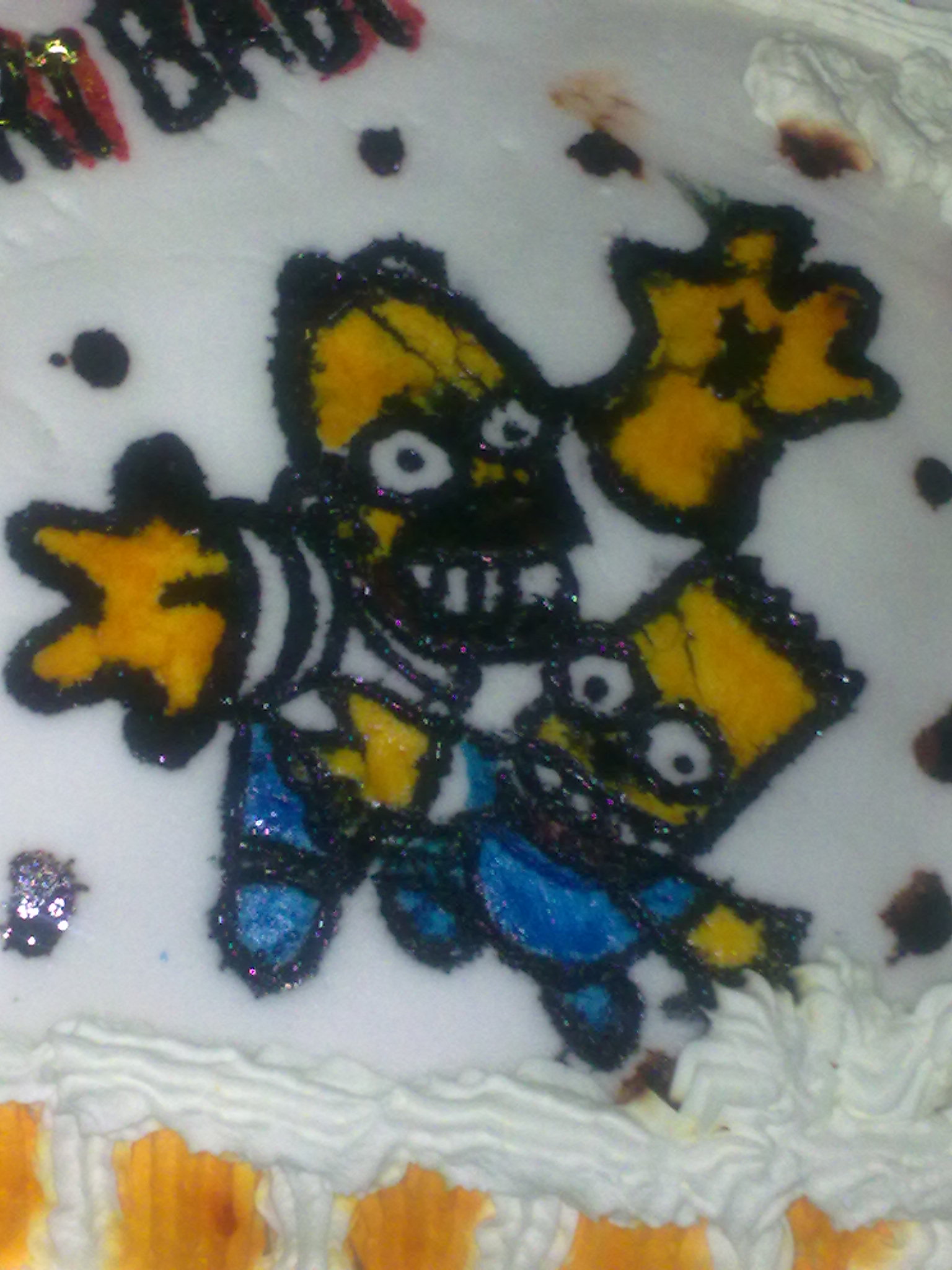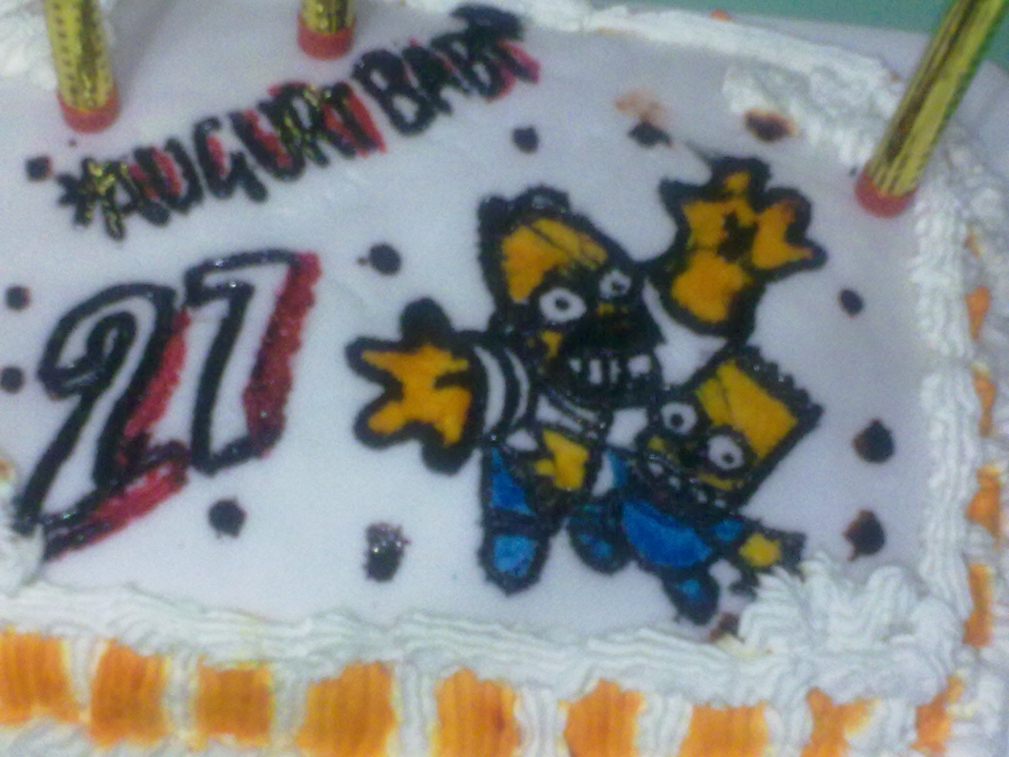 Poi ho steso la mia pasta di zucchero in un rettangolo più grande della torta in modo da ricoprirla tutta, Nel frattempo avevo copiato il disegno su carta lucida da disegno e aiutandomi con uno stuzzicadenti ho punzecchiato tutto il disegno facendo in modo di bucare un pochino anche la pasta di zucchero , a questo punto ho tolto il foglio e con uno stuzzicadenti da spiedini ho ripassato il disegno creando un leggerissimo solco nella pasta di zucchero, che poi ho riempito con il nero per i contorni e con gli altri colori il resto, i simpson li ho colorati con un pennellino.