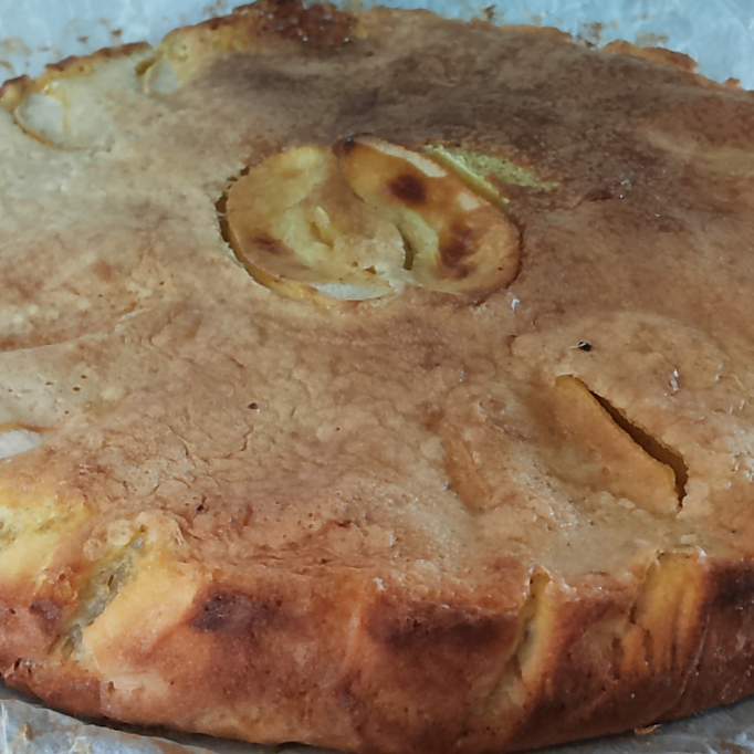 Questa è la ricetta della torta di mele che i parigini mangiavano nei bistrot nella metà del secolo scorso. La temperatura di cottura potrebbe dover essere adattata al vostro forno, perciò tenete d'occhio come procede (la ricetta infatti parla di forno caldo, ma essendo un po' datata non è più precisa...).