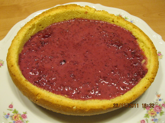 "coperchio chiuso" inserire le pere con il limone, i frutti di bosco scongelati, lo zucchero e cuocere per 10m 100° vel 2, addensare a varoma se è troppo liquida, fare raffreddare poi inserire la colla di pesce messa in ammollo e strizzata, lo yogourt , mescolare per 20 sec a vel 3.Tagliare la calotta alla torta, incidere intorno il bordo e scavare l'interno creando un incavo. Versare la farcia ricomporre la torta e versare la gelatina di albicocche calda.