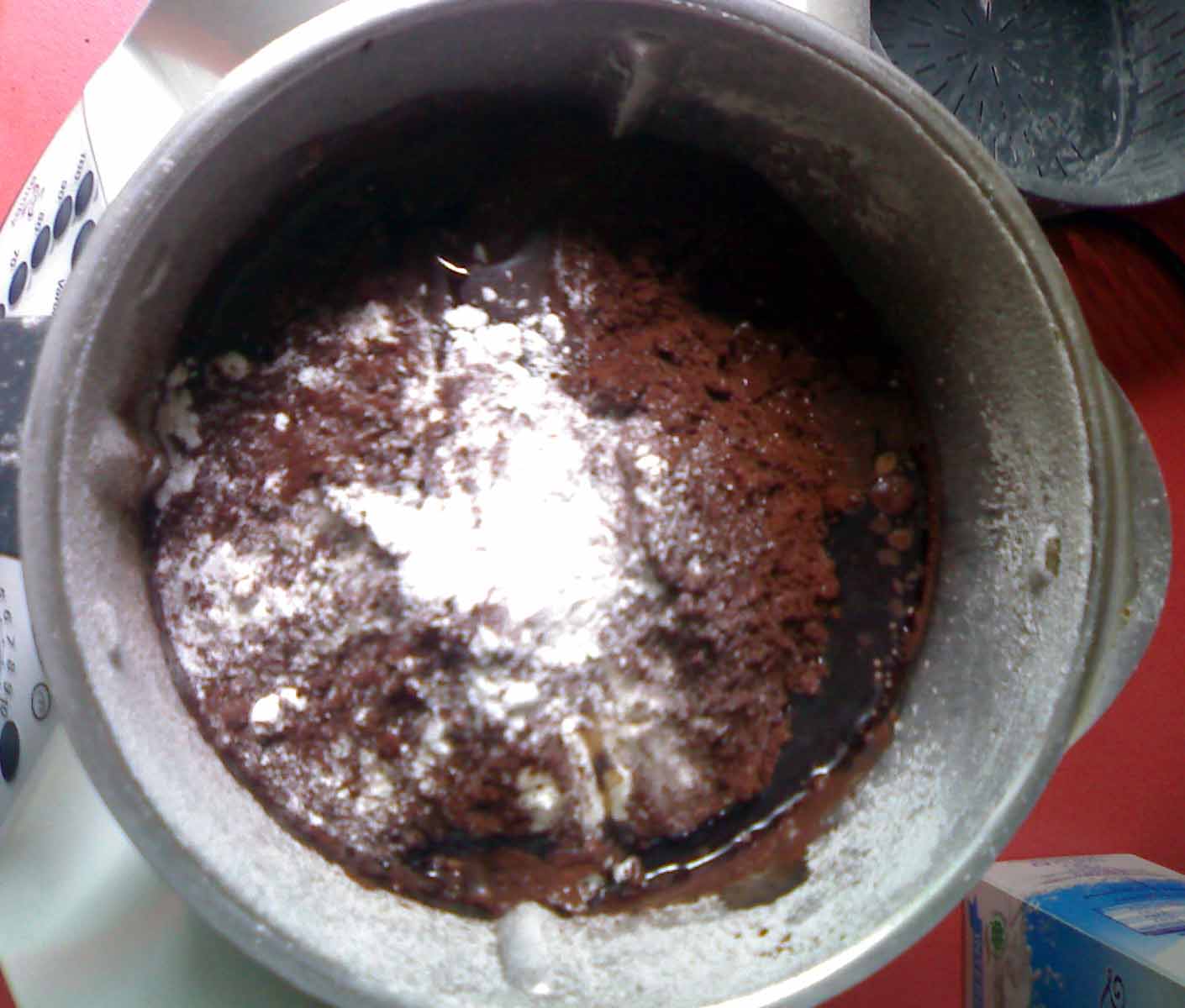 Unire tutti gli altri ingredienti (tranne le gocce di cioccolato) e il lievito per ultimo, vel 6 per 15 secondi.
