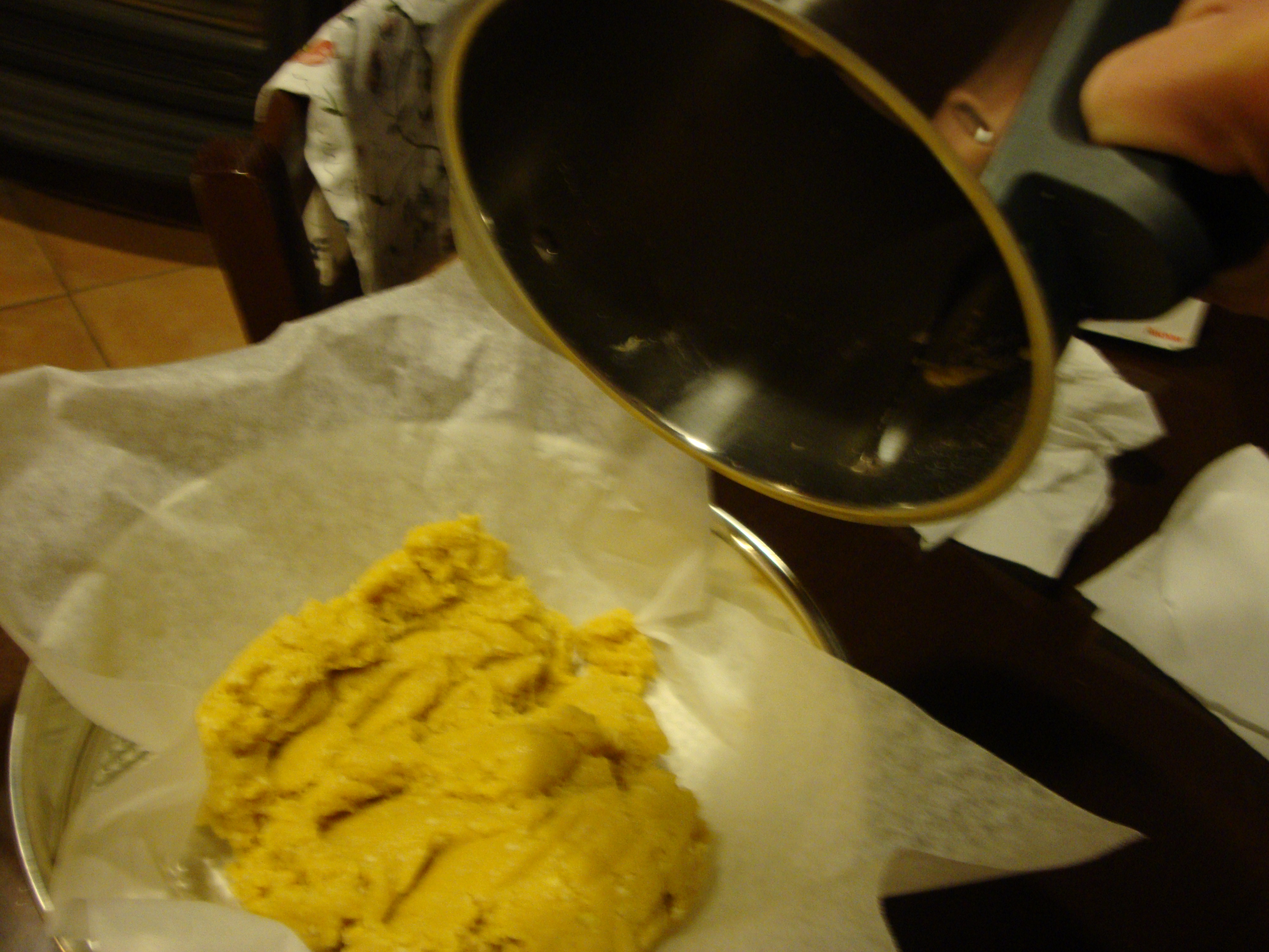 * Aggiungere farina bianca, farina gialla, zucchero, margarina, rhum, buccia del limone grattugiata, tuorli ed azionare il Bimby 2,5min /