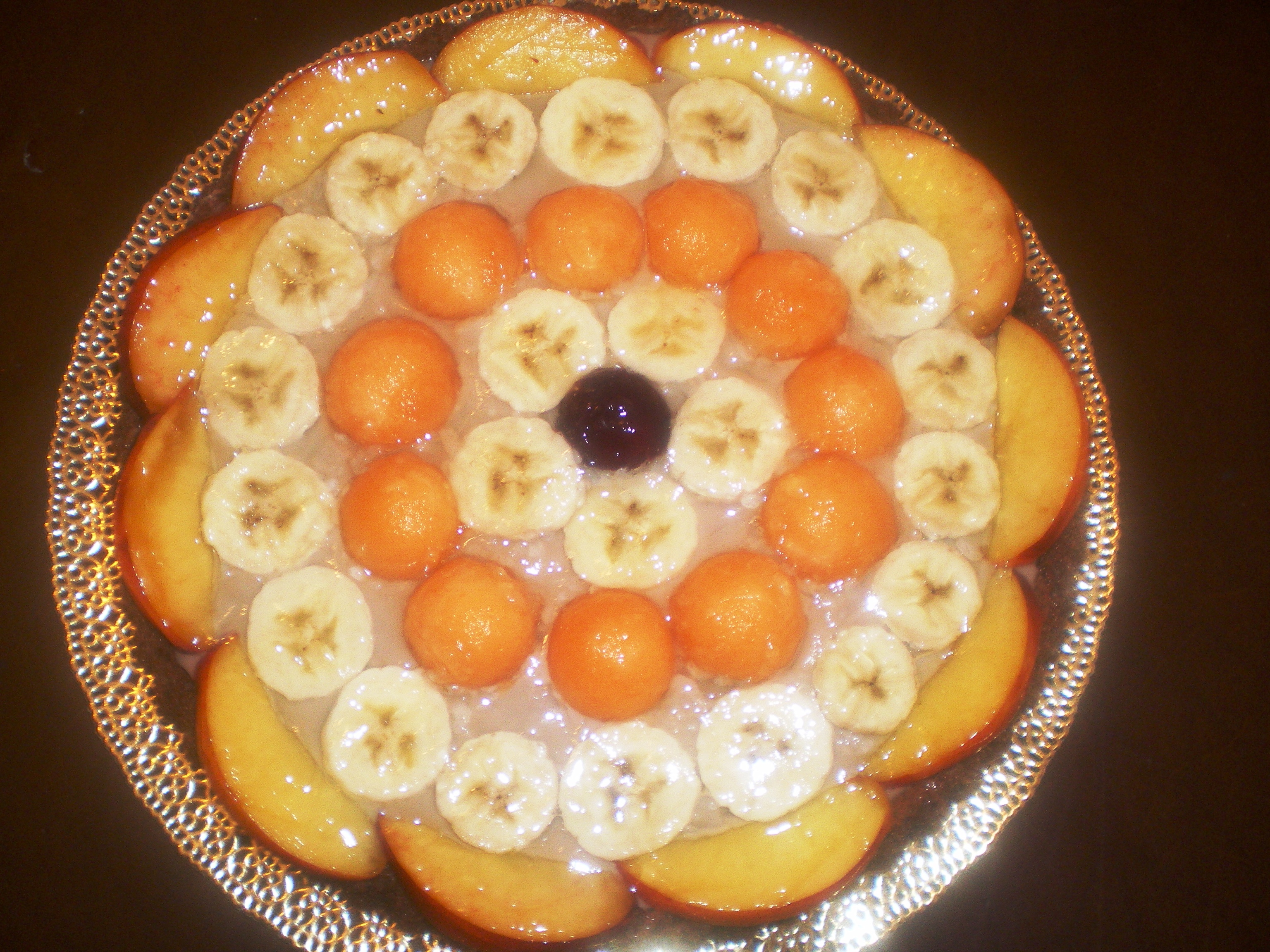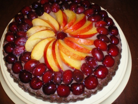 Assemblare la torte versando la crema sul fondo della torte e decorare con frutta a scelta e gelatina.