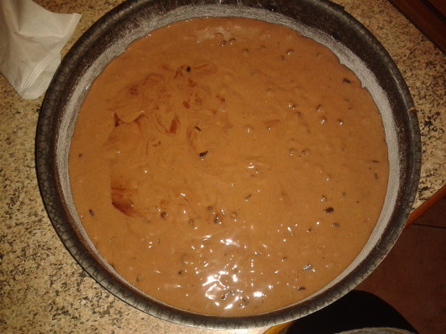 "antiorario" Imburrare e infarinare una teglia 24cm e versarci l'impasto.