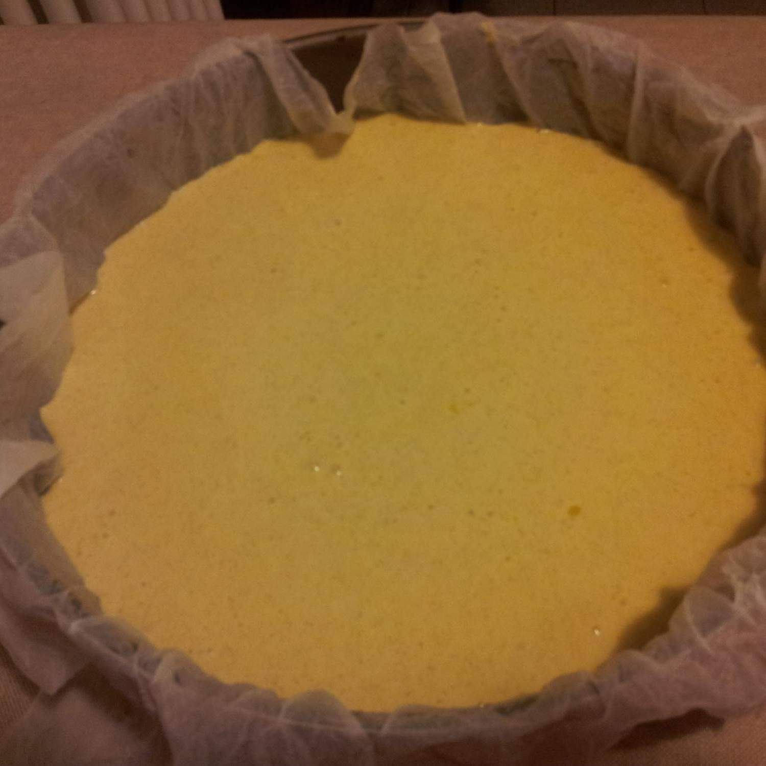 4. Versare il composto in una tortiera foderata con carta forno bagnata e strizzata e cuocere in forno per 20/25 minuti a 180°