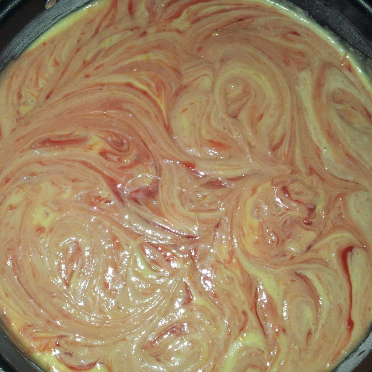 Versare il composto in uno stampo imburrato ed infarinato, livellare, distribuire sopra la crema intiepidita e con i rebbi di una forchetta inglobarla nel composto descrivendo dei cerchi.