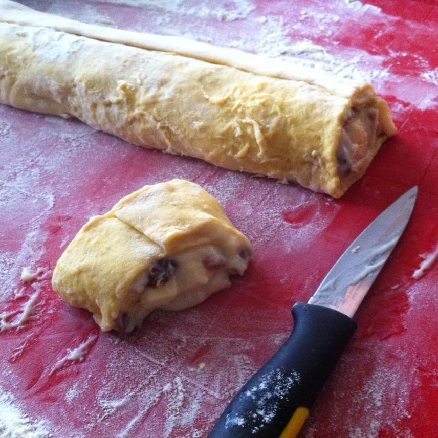 A questo punto procedere arrotolando la pasta dal lato lungo fino a formare un lungo salame farcito.