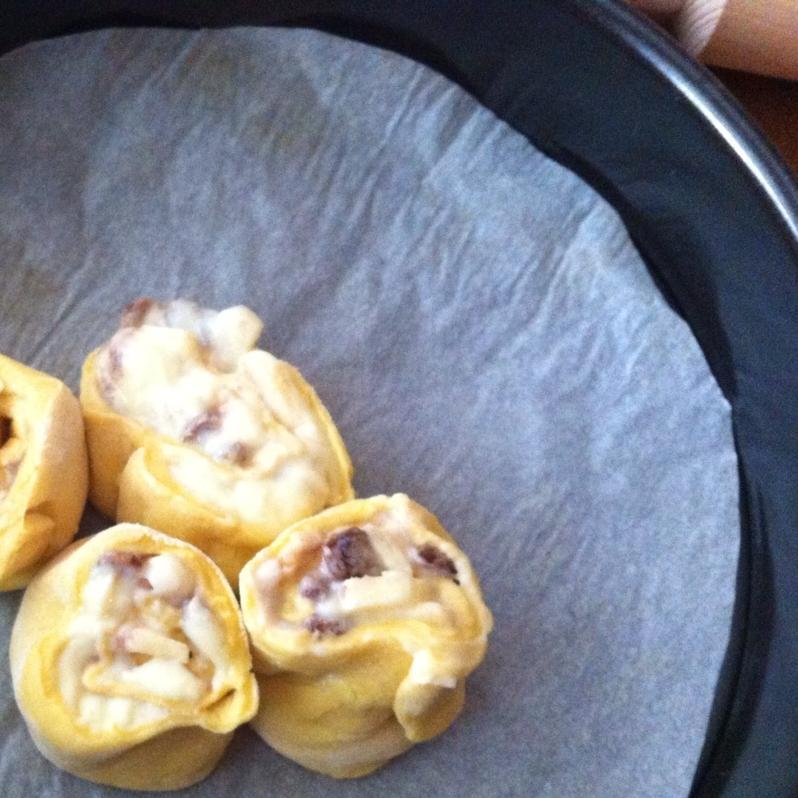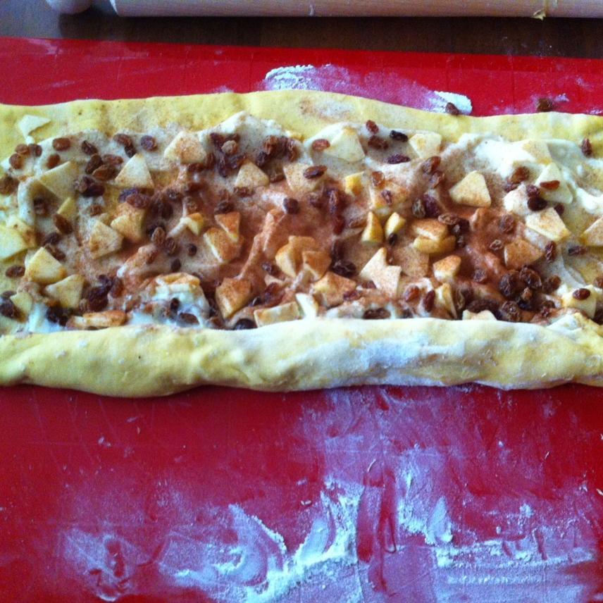 Poi aggiungere la mela tagliata a fettine sottili, l'uvetta ben strizzata ed infine una spolverata di cannella.