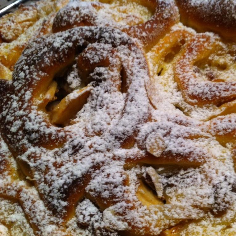 Passata l'ora estrarre la torta dal forno, aggiungere le lamelle di mandorla sulla superficie delle rose, riscadare il forno a 200 gradi e, quando raggiunge la temperatura, infornare per 15 min. a 200 gradi e poi per altri 15 min. a 180 gradi.