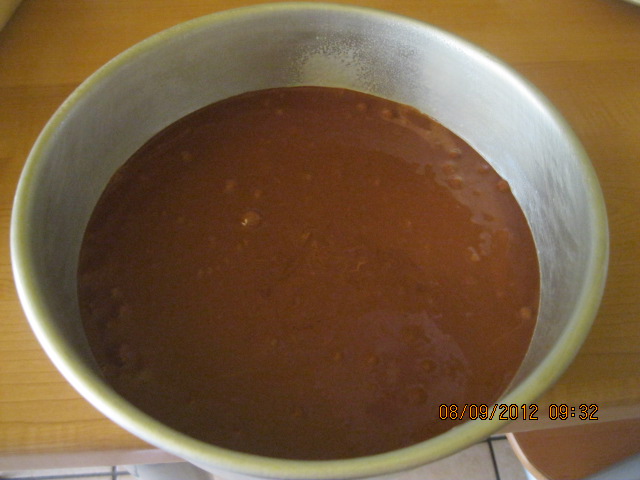 Incorporare il cioccolato fuso, fare raffreddare.Stendere la glassa su tutta la superficie della torta, lasciare solidificare per 2 ore circa.