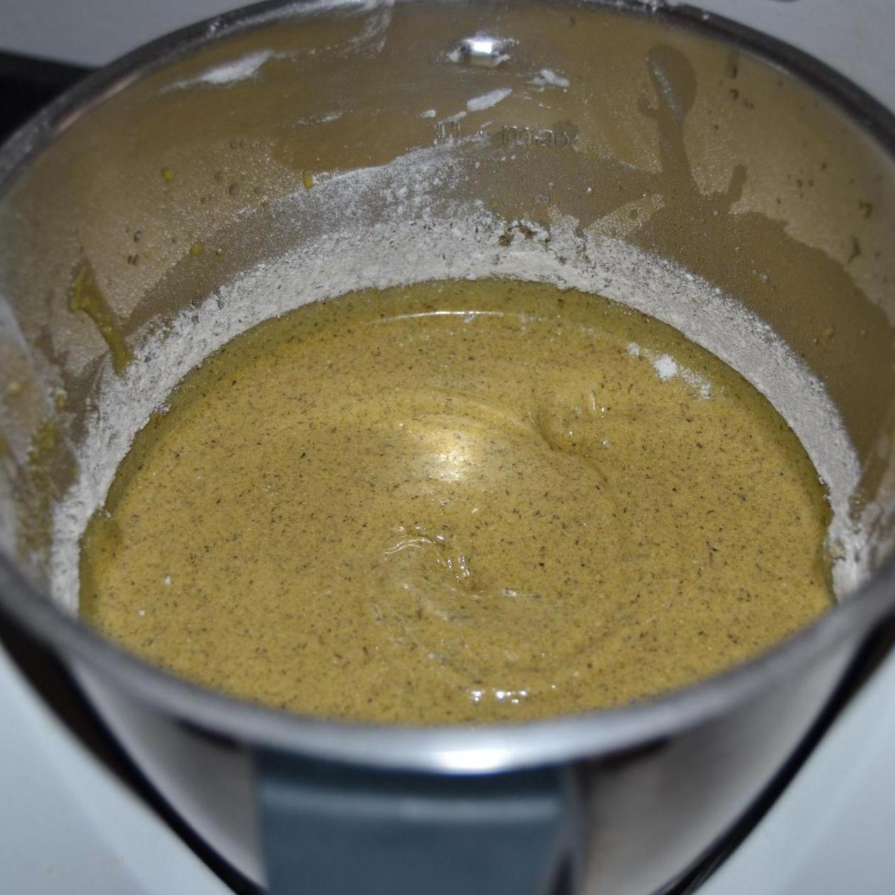 Inserire nel boccale l'olio, le uova, il succo delle arance e lo zucchero rimasto. Amalgamare 15 sec. vel 5.