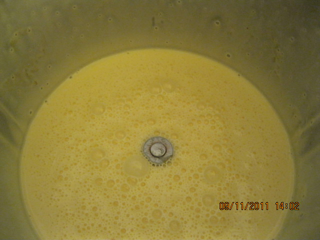 Nel coperchio chiuso"coperchio chiuso" pulito inserire le uova con lo zucchero e montare per 3m vel 3/5 , aggiungere la fecola , il lievito e il sale,30 sec vel 5 poi unire il composto tenuto da parte , 30sec vel 5/6 unendo dal foro il brandy.