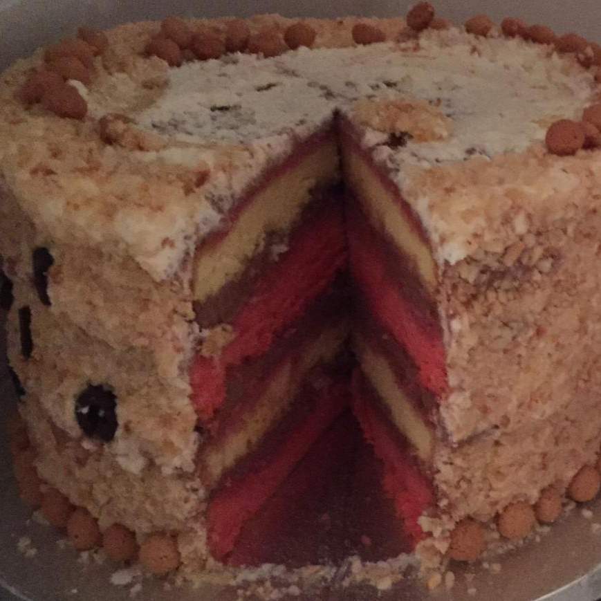 mettere su un piatto grande piano un primo discho di pan di spagna e spennellarlo con il liquore, quindi stendere uno strato di crema alla ricotta e nutella di circa mezzo cm, coprire con un altro dico di pan di spagna e continuare con la frcitura fino all'ultimo disco. (avendo fatto pan di spagna di colori diversi si possono alternare i dischi).