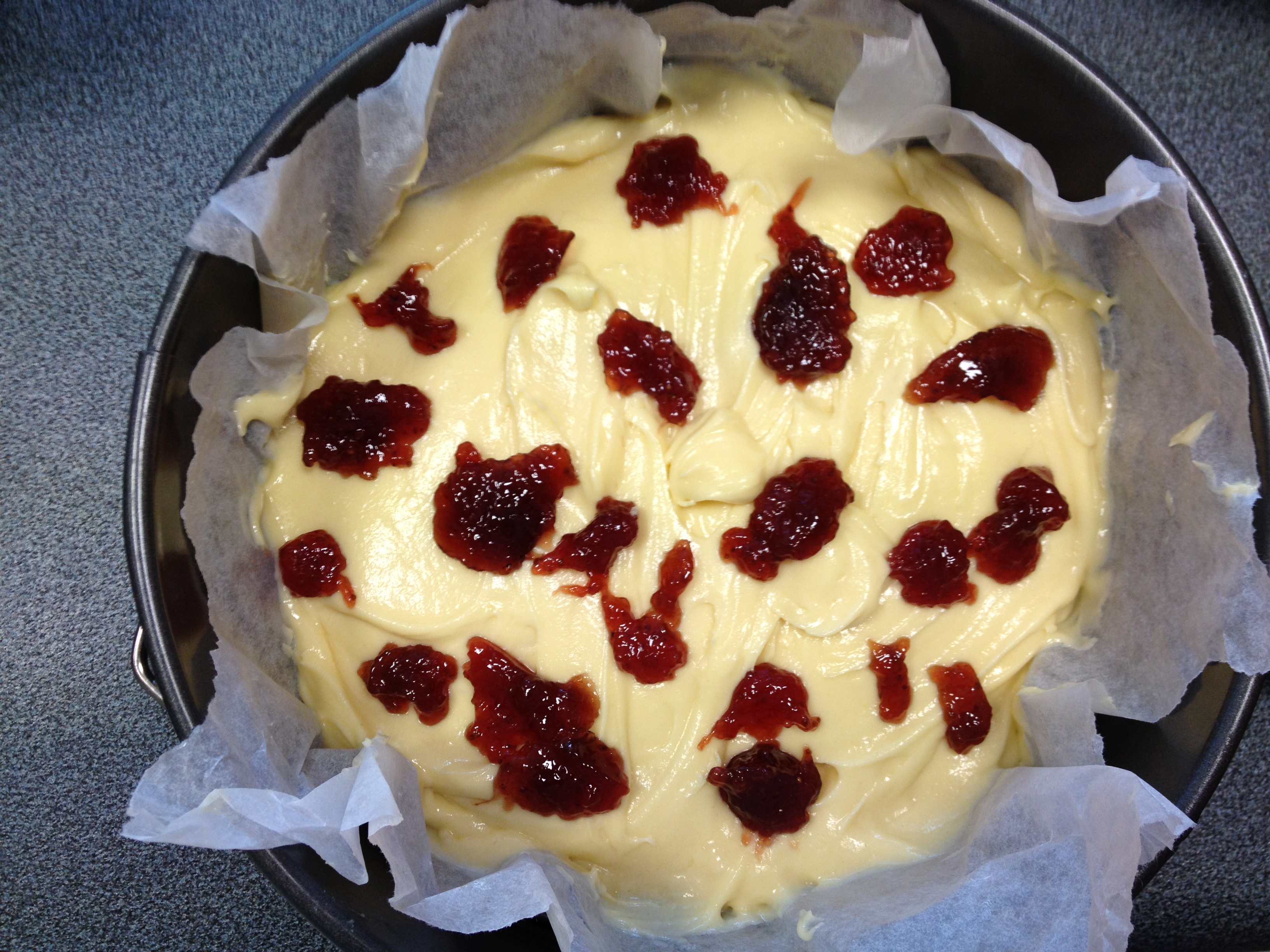 6. Disporre dei fiocchetti di marmellata sull'impasto senza mescolarla.