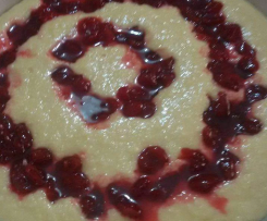 - Imburrare una teglia da 26 cm, versare il composto nella tortiera, aggiungere le amarene sciroppate affondandole leggermente in modo che non restino molto in superfice.