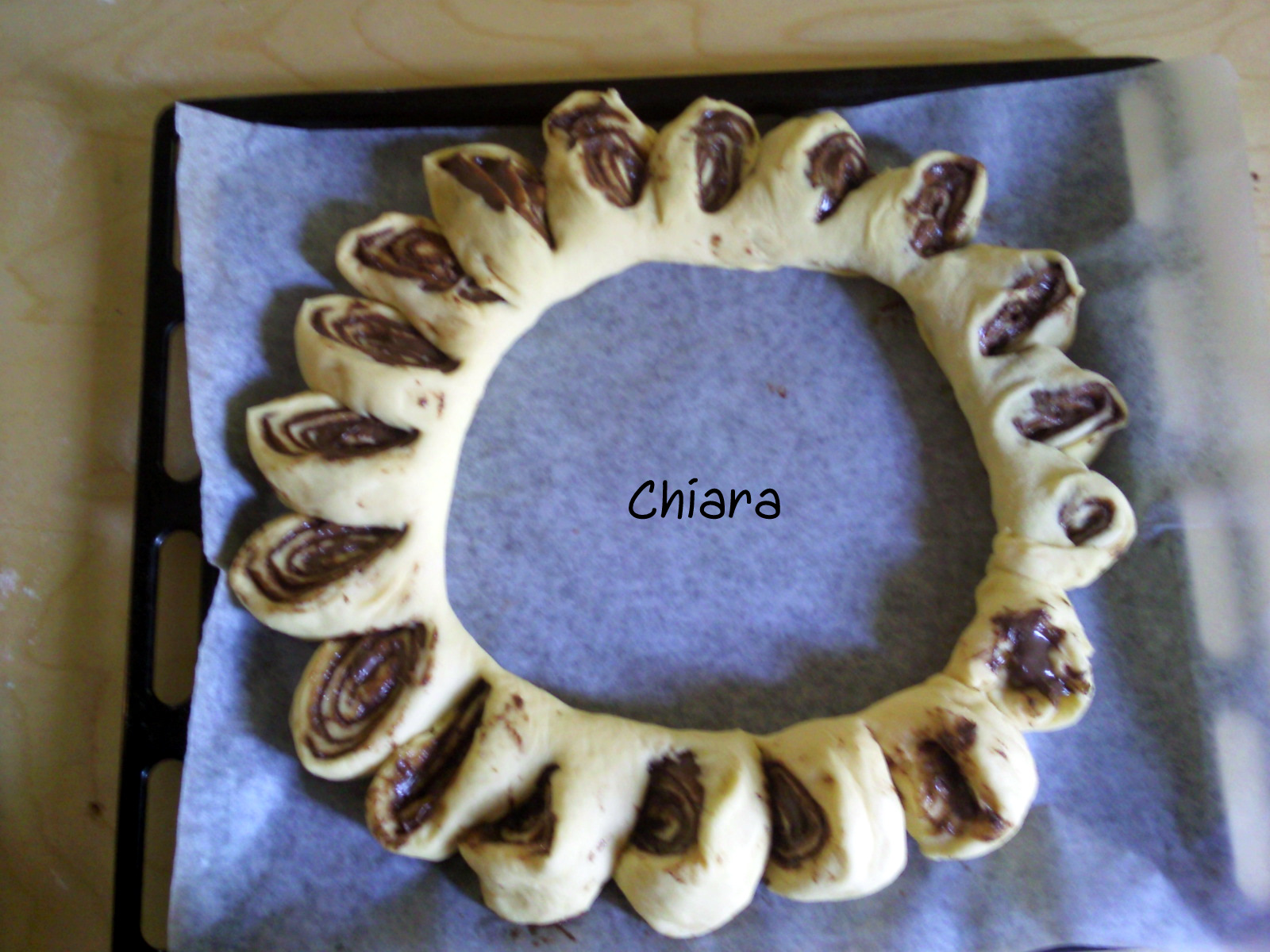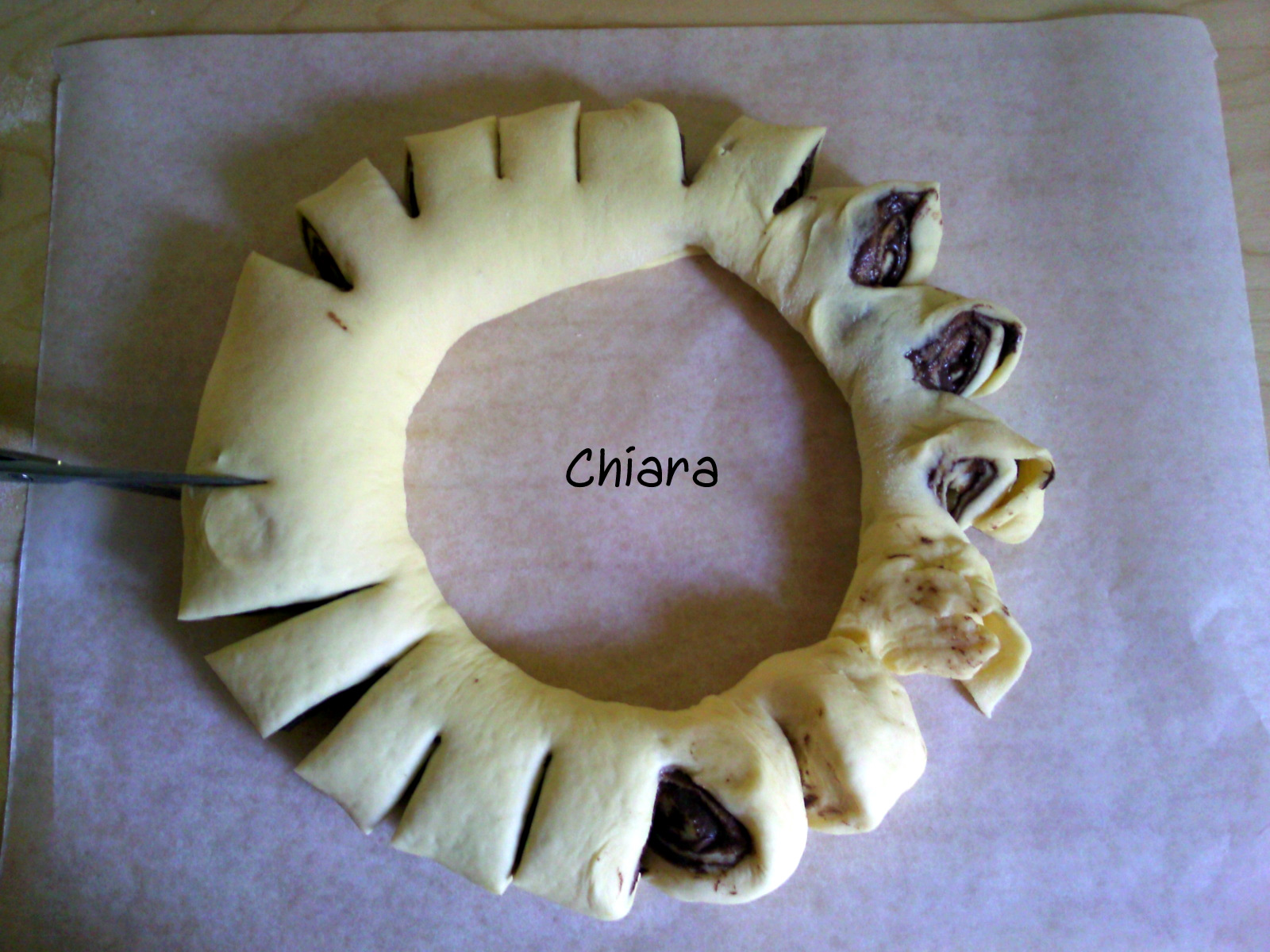 Quindi dare un mezzo giro ai raggi e lasciare lievitare un'altra mezz'ora.