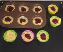 Coprire con i pirottini di carta gli stampini. - Versare un po di composto nei pirottini, poi un cucchiaino abbondante di confettura al centro e coprire con altro impasto (è molto appiccicoso quindi lavoratelo meno possibile).