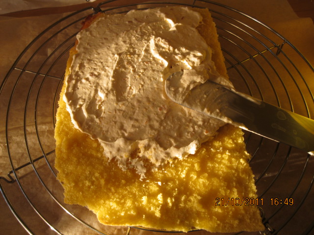 "coperchio chiuso" la panna ben fredda e montare per 30 sec /1m a vel 7 controllando dal foro del coperchio. Poi aggiungere la marmellata a piacere. In un pentolino fare bollire l'acqua e lo zucchero per 10m circa , quando è freddo aggiungere il succo e il liquore. Bagnare generosamente tutta la pasta , coprire con la farcia e mettere in frigor avvolta da carta stagnola per 30m.Ganache: inserire la panna nel