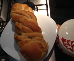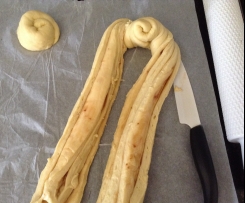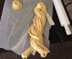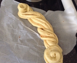 A cottura ultimata sfornare e spennellare con un po d'acqua la superficie della treccia per mantenere morbida la parte superiore della treccia.