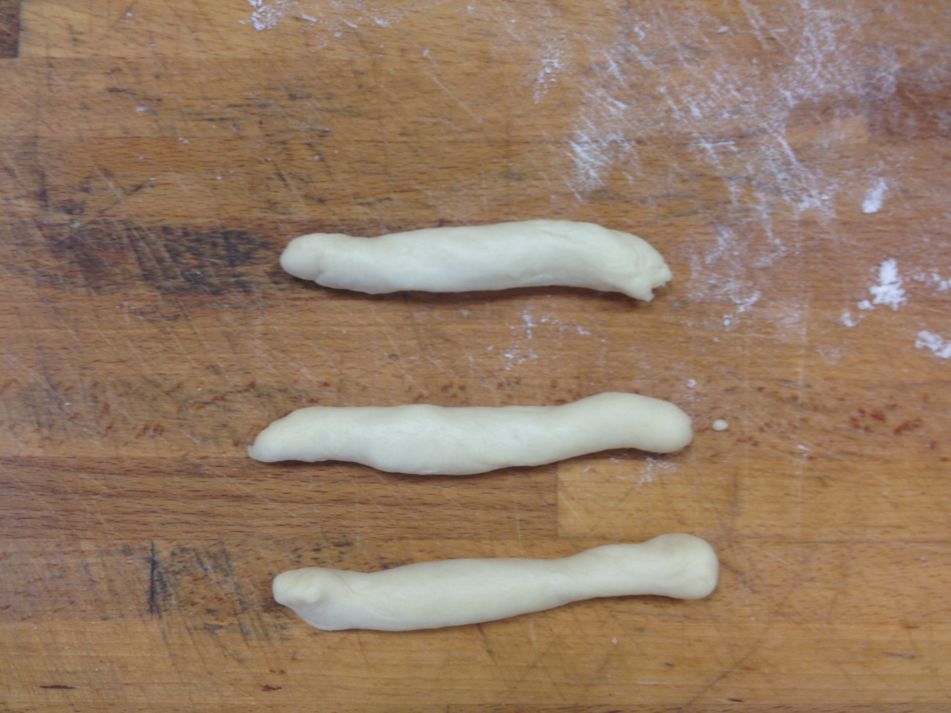 "velocità spiga" .3. Dividere l'impasto in 10 palline e, da ciascuna ricavare 3 rotolini di pasta che andranno intrecciati per ottenere una treccia.