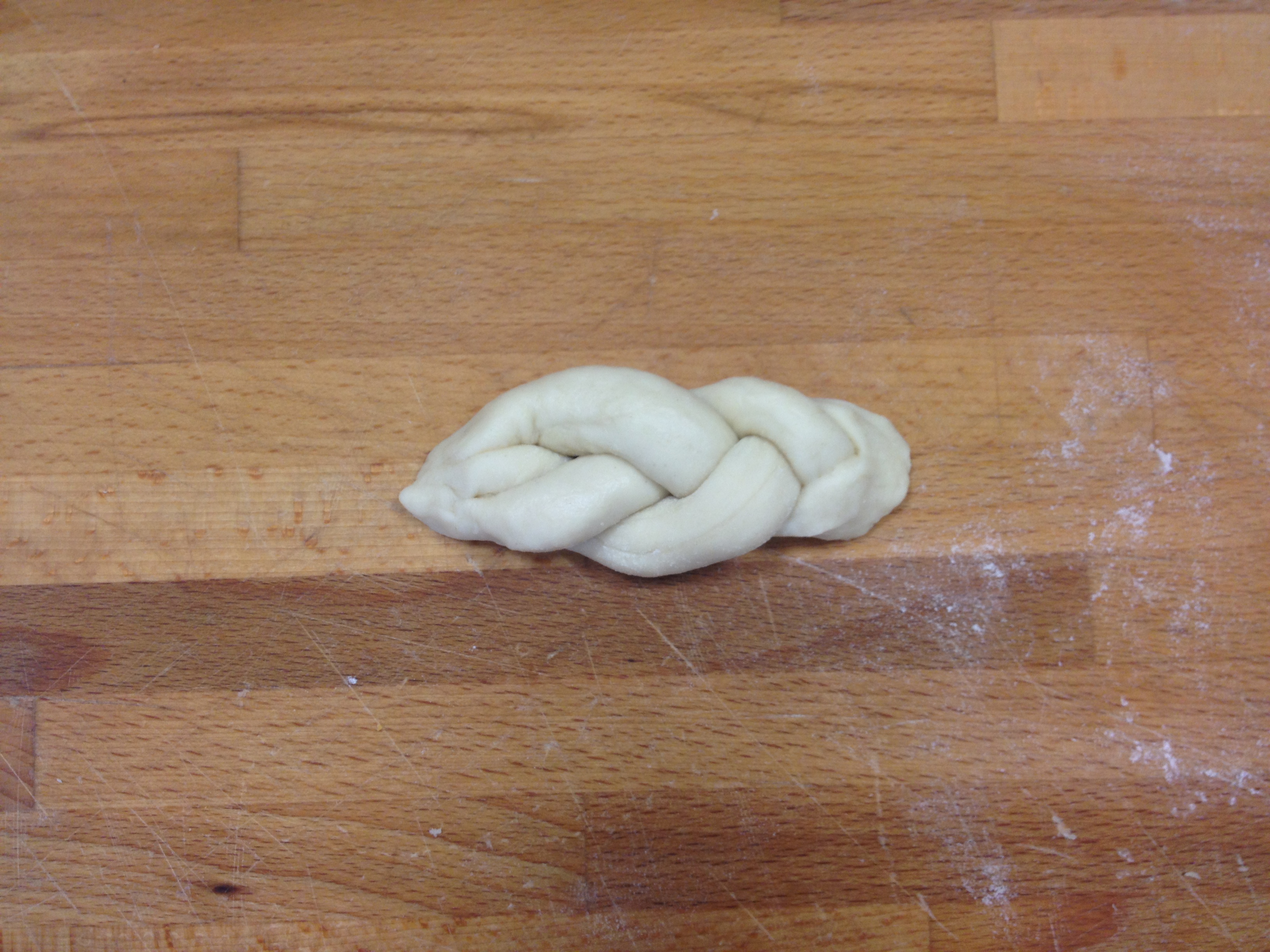 Al punto 5 si consiglia di coprire le treccine con un foglio di pellicola trasparente per alimenti, cosicchè la superficie non si secchi durante la lievitazione.
