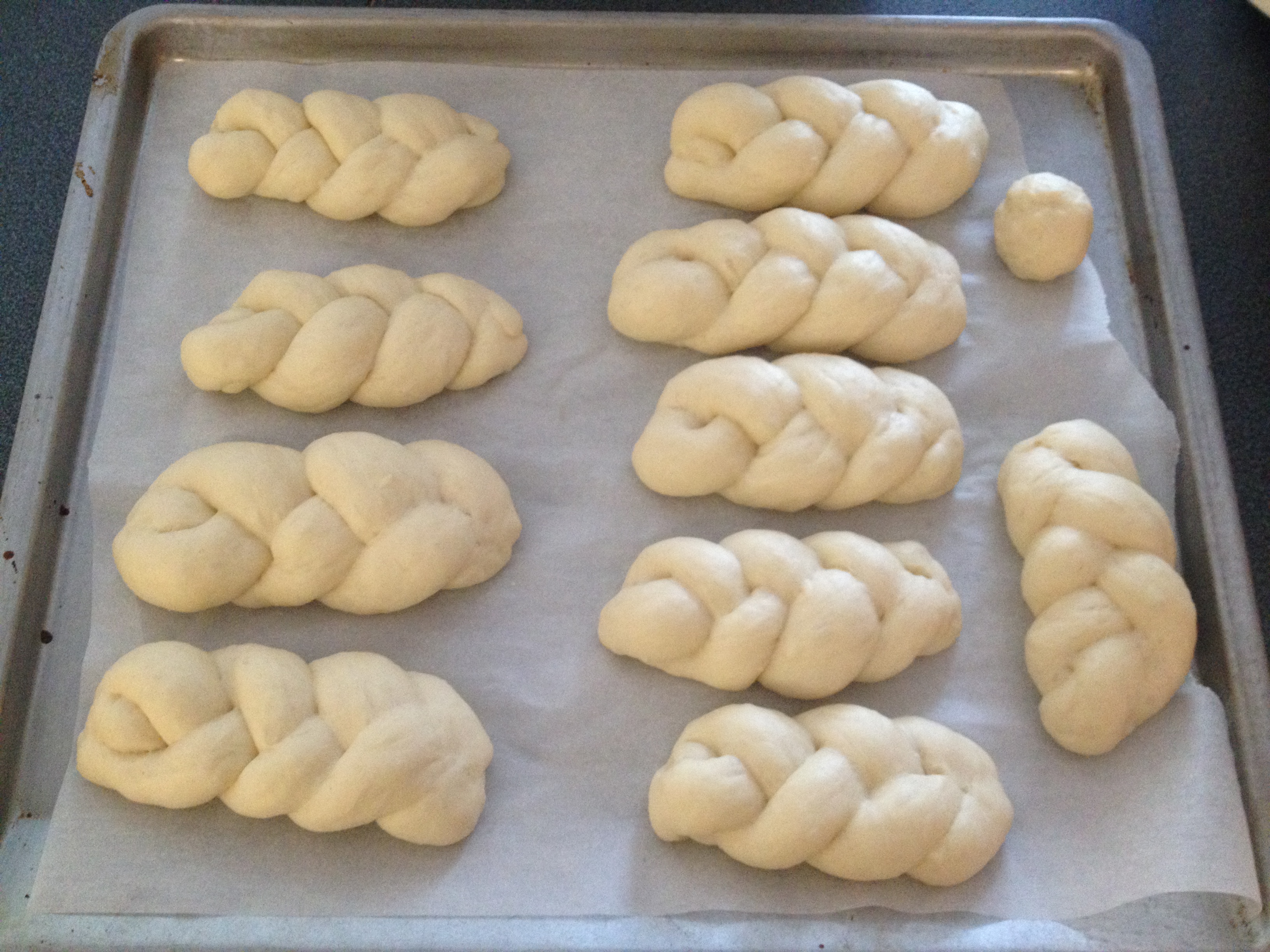 5. Disporre le treccine sulla placca del forno ricoperta di carta forno e riporre a lievitare nel forno spento per circa 8 ore (una notte).