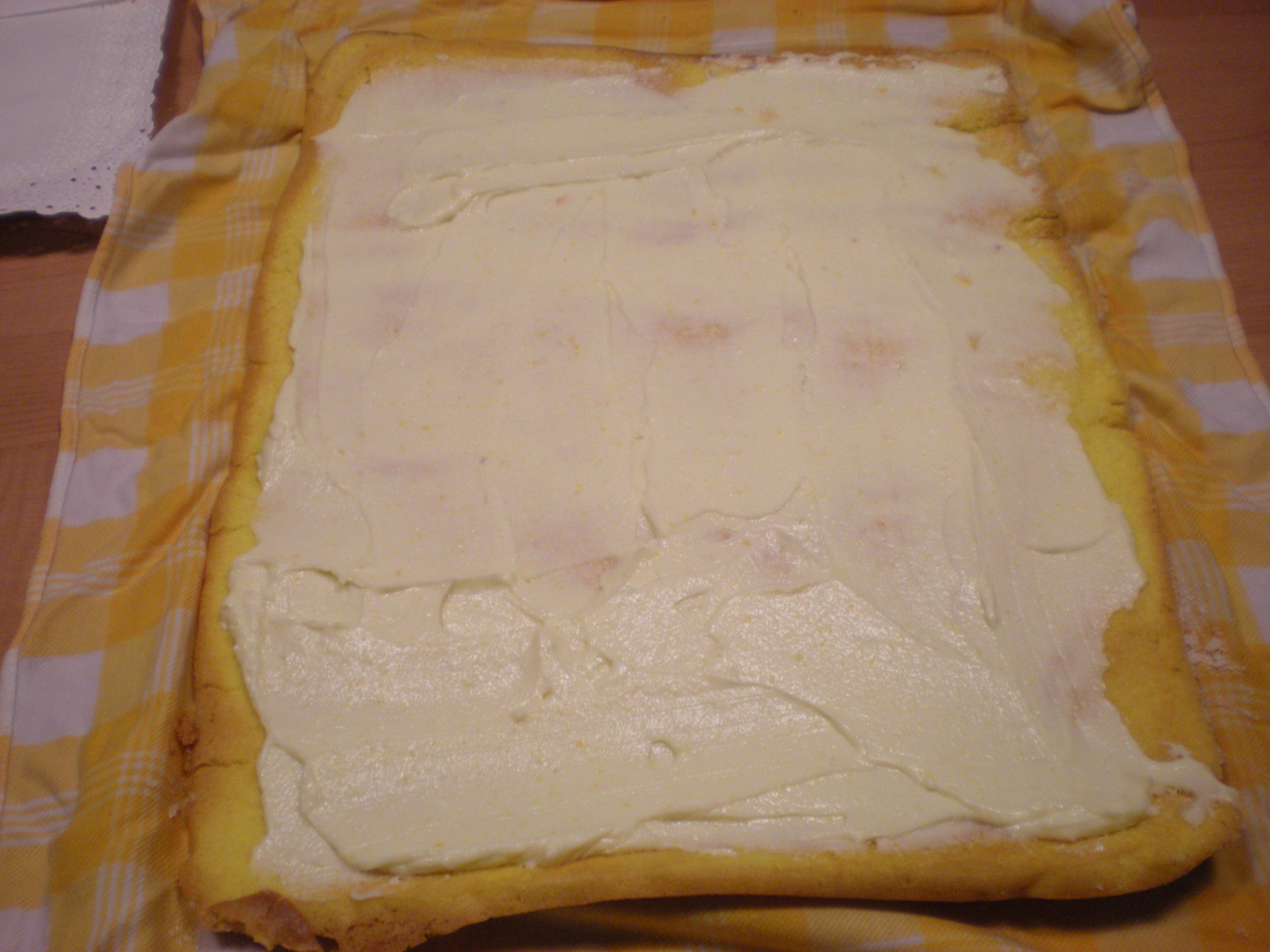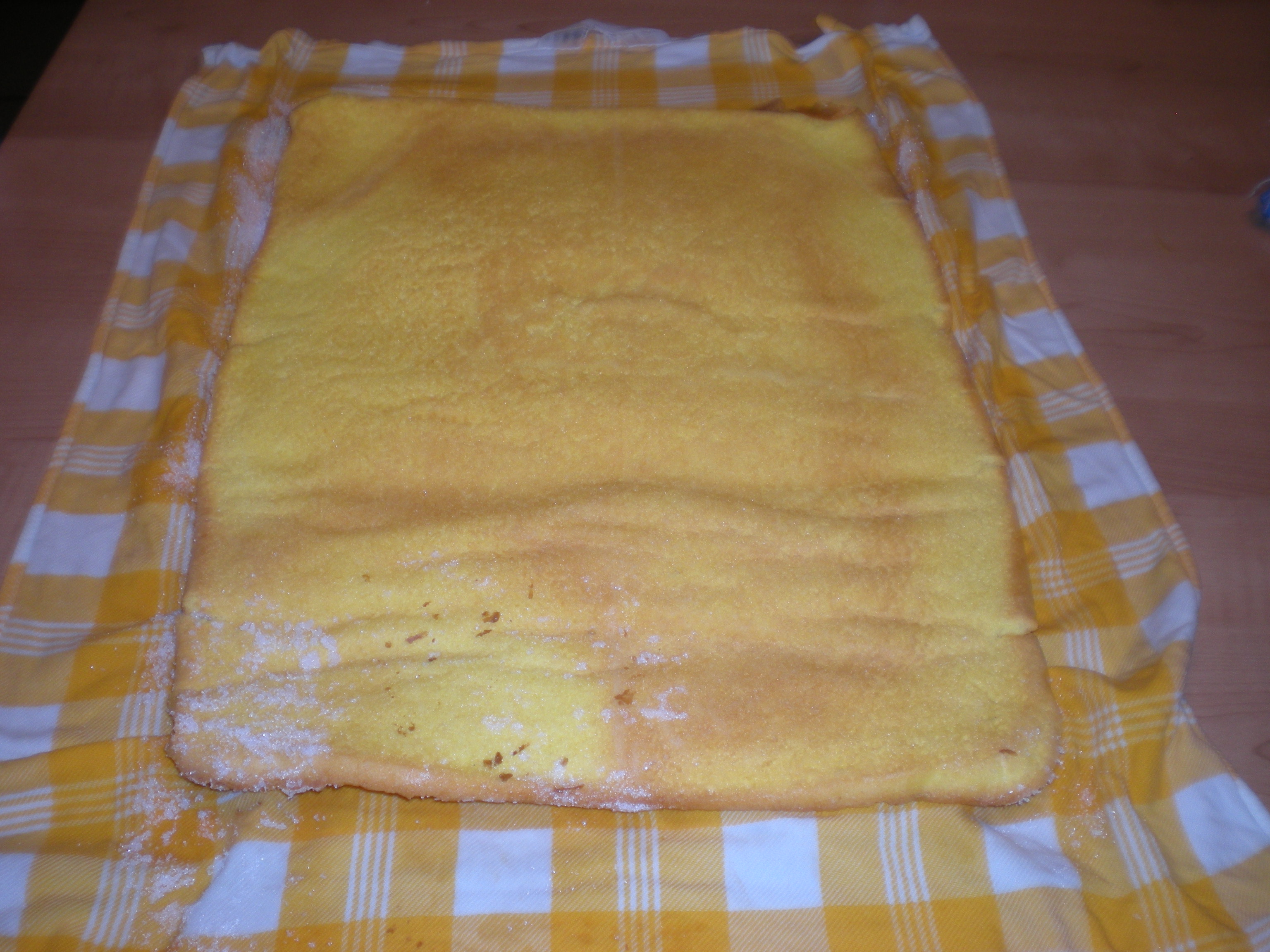 "coperchio chiuso" 30 sec vel 6:Versare nella teglia coperta da carta da forno livellando l'impasto, cuocere in forno caldo a 180° 15/20m circa. Preparare un canovaccio inumidito e cosparso di zucchero, rovesciarvi sopra la base ancora calda e aiutandosi con il canovaccio formare il rotolo,e farlo raffreddare. Nel frattempo nel