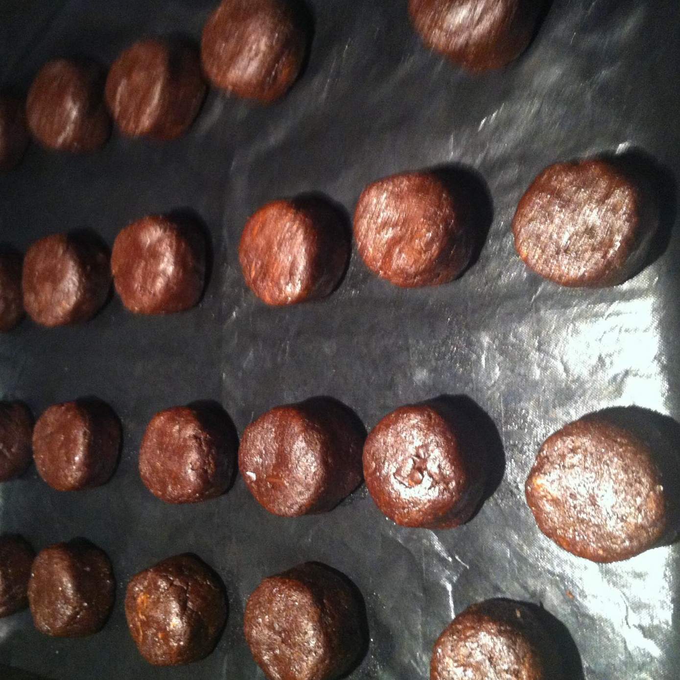 5. schicciate un pochino le palline e posizionatele sulla placca del forno rivestita di carta forno e infornate a forno caldo, in funzione statica, nella parte centrale del forno a 200 gradi per 12-15 minuti