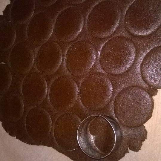 Prendere parte dell'impasto, formare una palla compatta, stenderla su della carta da forno (foto3), che aiuterà a non appiccicarla al piano lavoro, e con l'aiuto di una formina, o bicchierino tagliare i biscotto e metterli sulla teglia coperta da carta forno