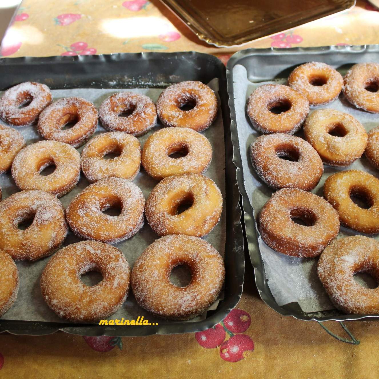 Le ho fatte ieri ma l'impasto era troppo molle per formare le ciambelle ho aggiunto della farina ma sono venute un po' durette in compenso il gusto è buono forse dovrei farle semplicemente a forma di sfingi