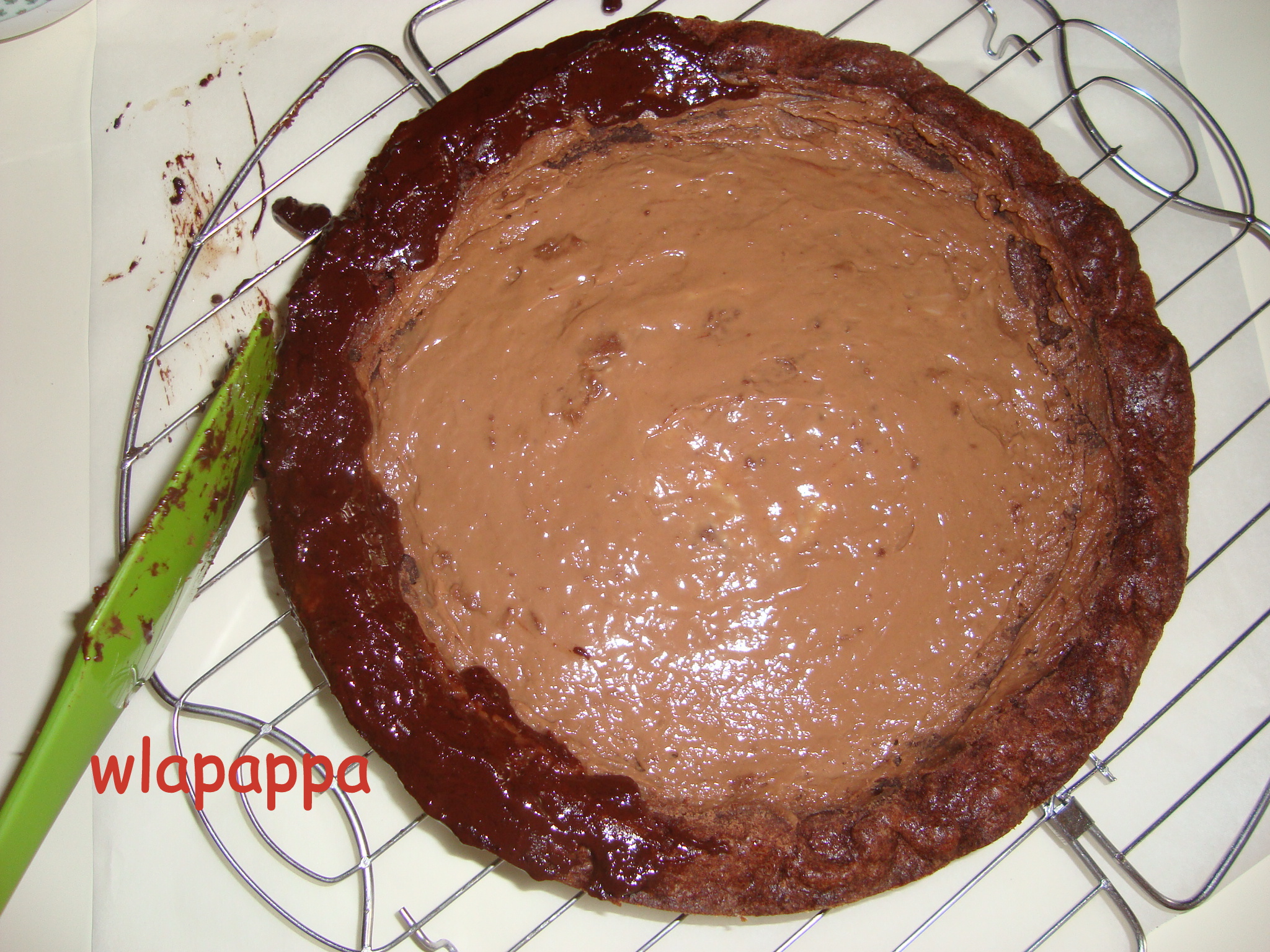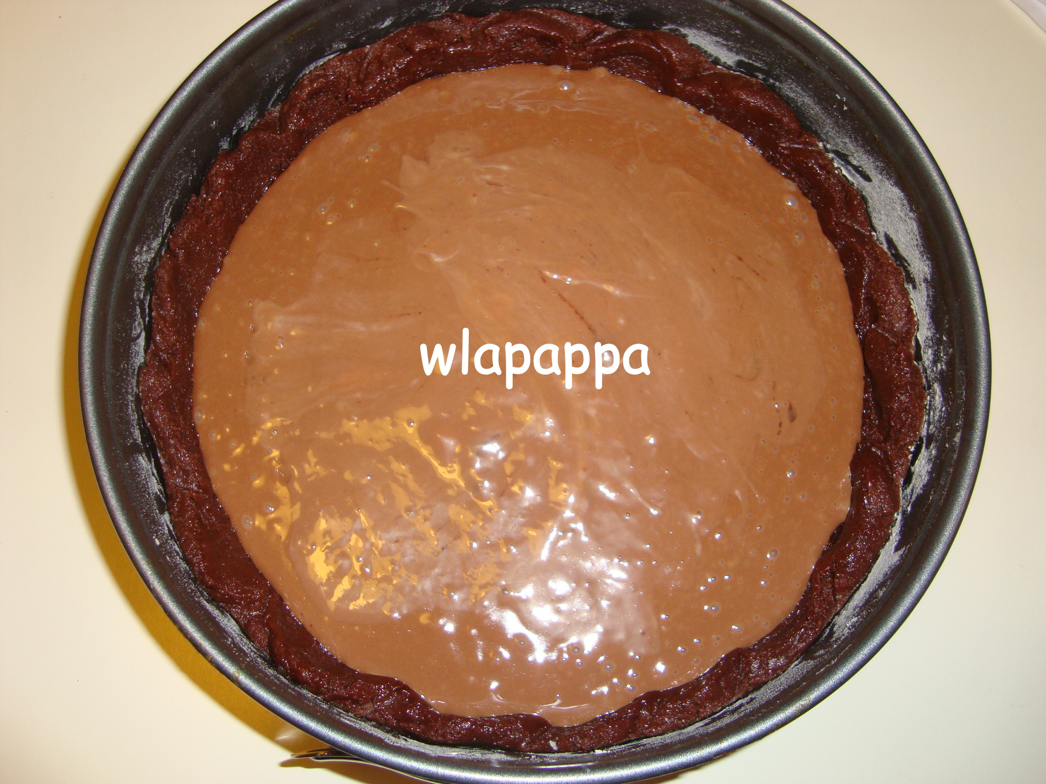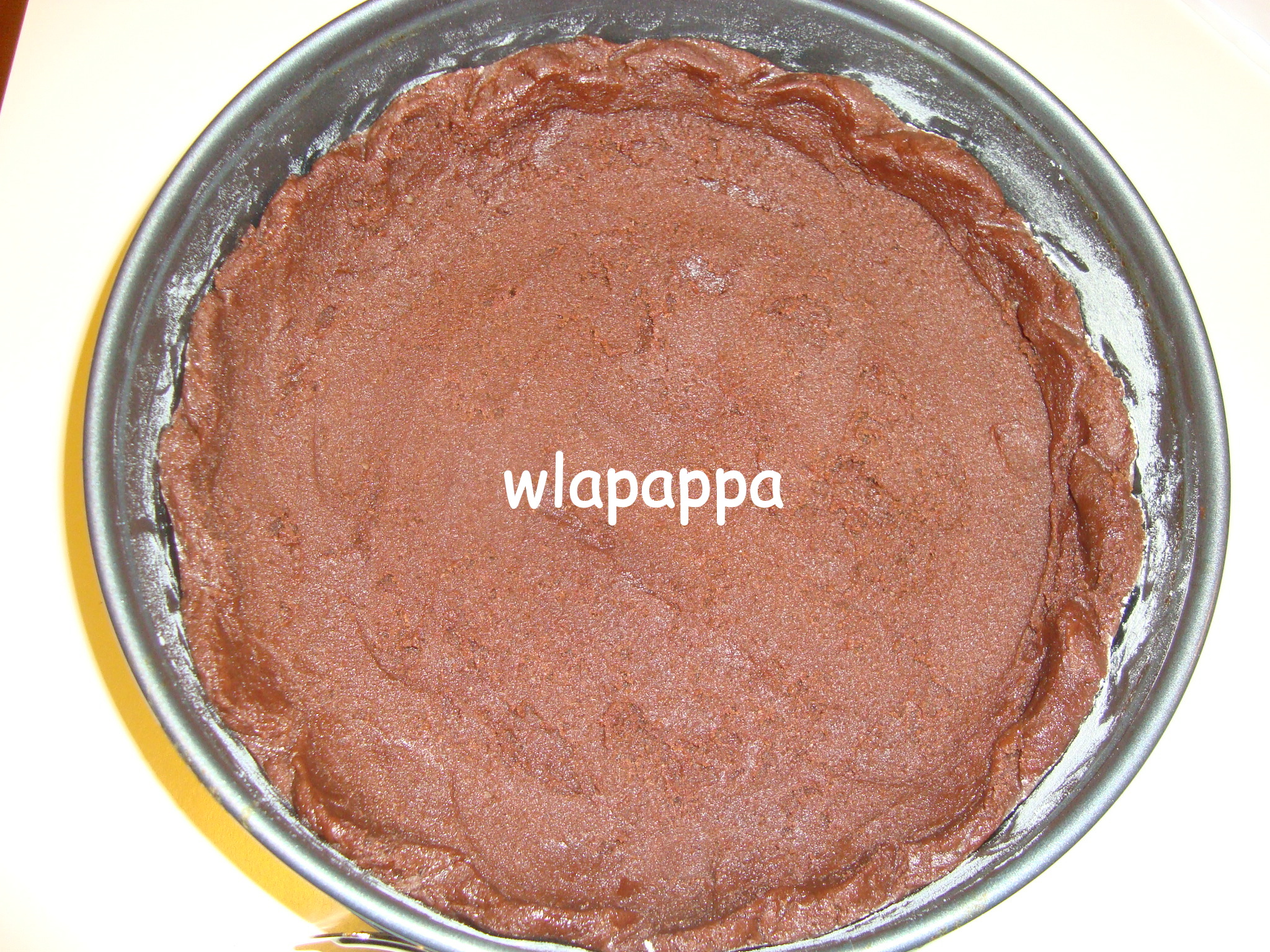 Versare la crema pasticcera al cacao, livellare con una spatola e cuocere in forno caldo a 180° per 35 minuti circa (regolatevi sempre con il vostro forno).