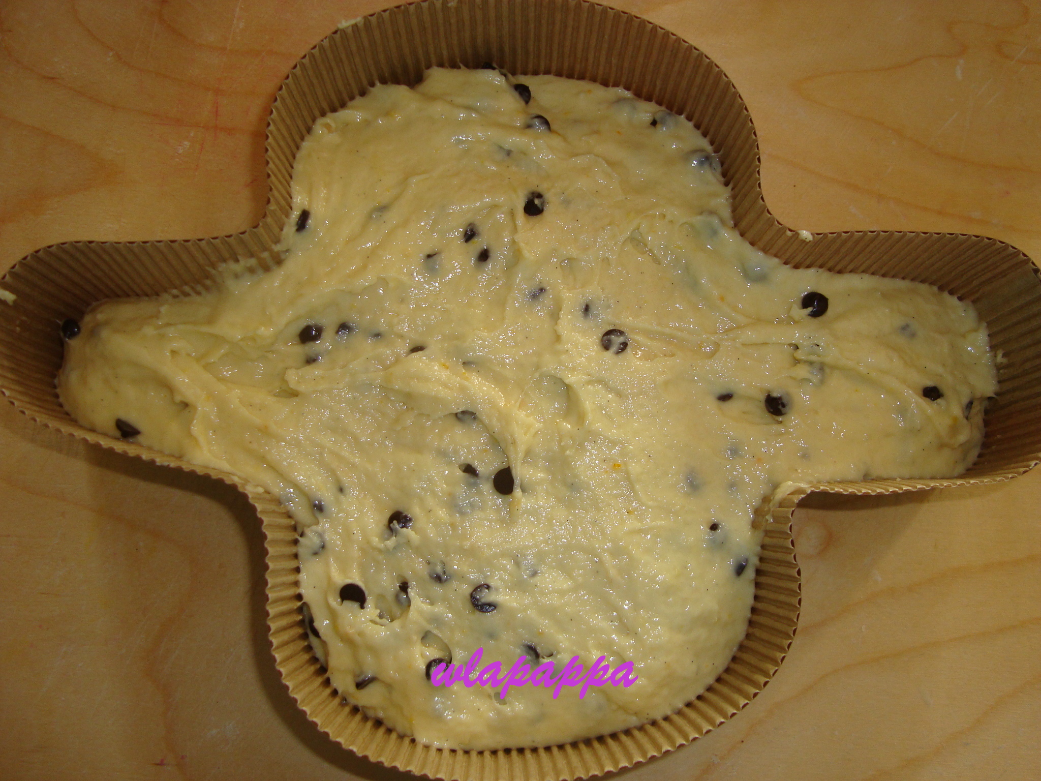- (Io ho diviso in due l'impasto per avere una colomba classica ed una al cioccolato