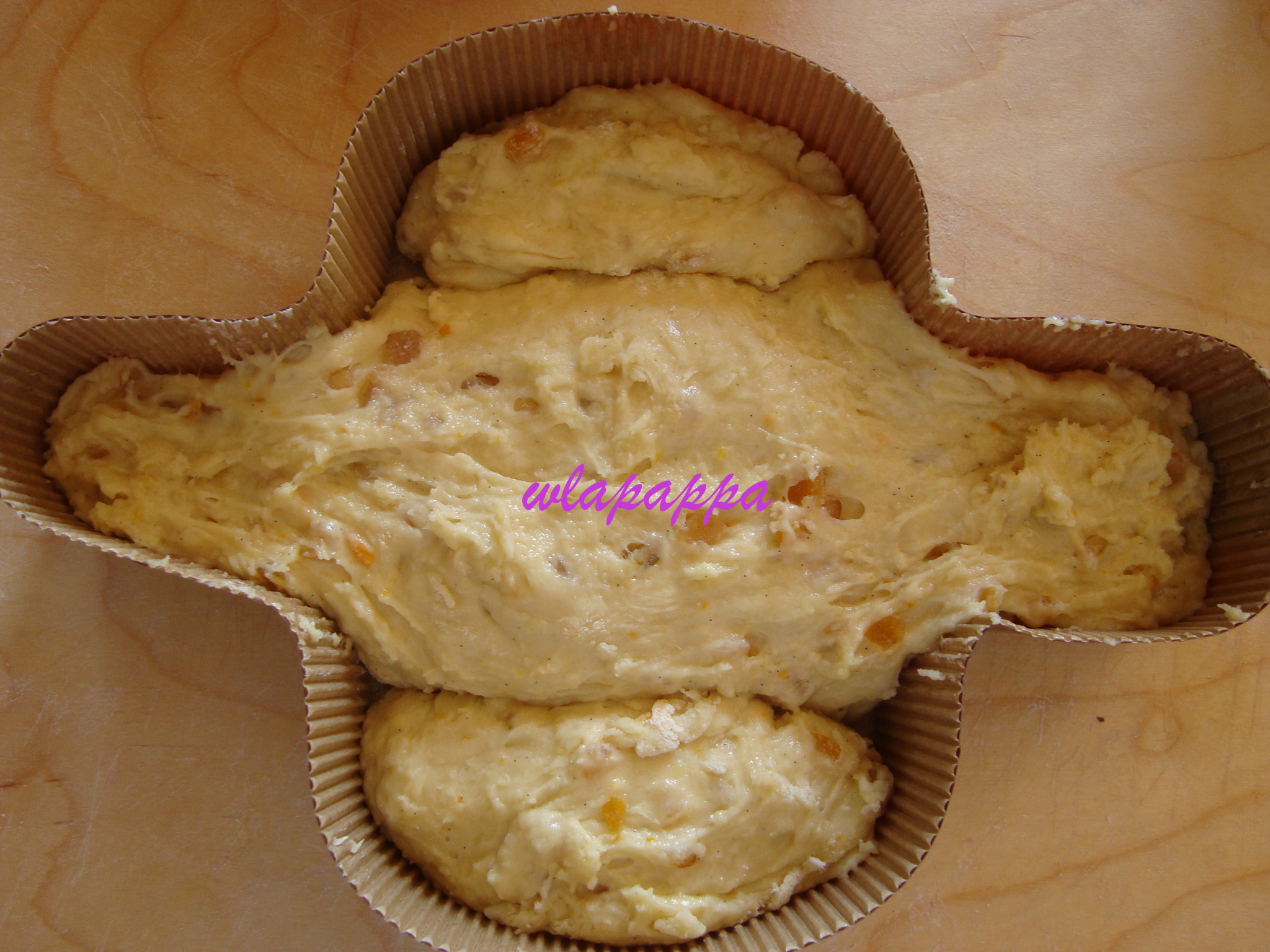 Alla fine della seconda lievitazione togliere dal forno le colombe e accenderlo a 200°.