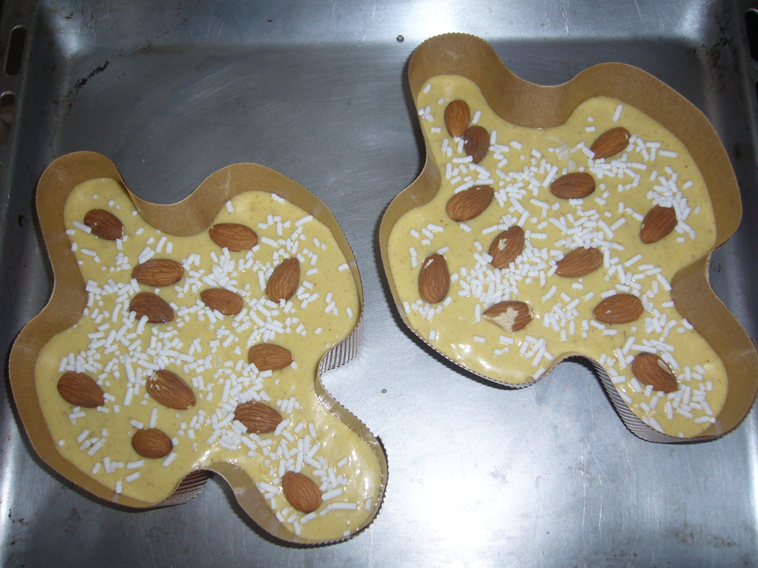 distribuire il composto in uno stampo da colomba della capienza di 750 gr