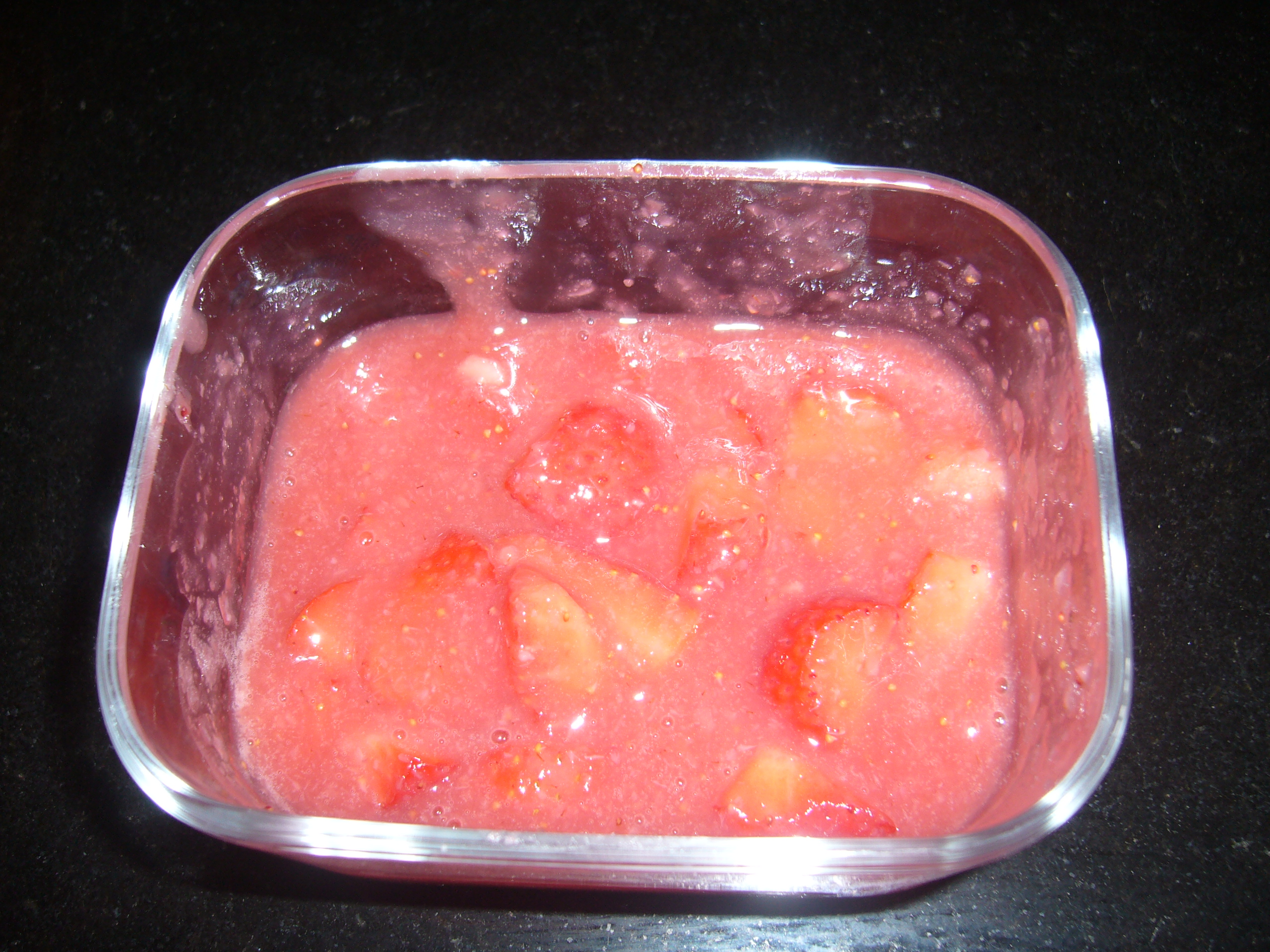 per la salsina mettere 150 gr di fragole,amido di mais e zucchero nel